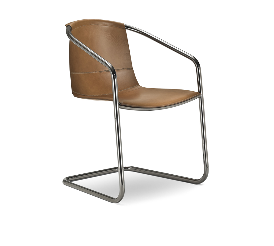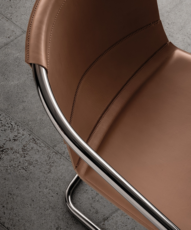 Дух мегаполиса воплощен в изящном и непринужденном кресле с простым графическим оформлением. Каркас выполнен из хромированной или окрашенной трубчатой стали на ваш выбор. Выбор в индустриальном стиле, который в сочетании с кожаной обивкой сидений делает Nancy незаменимым продуктом.