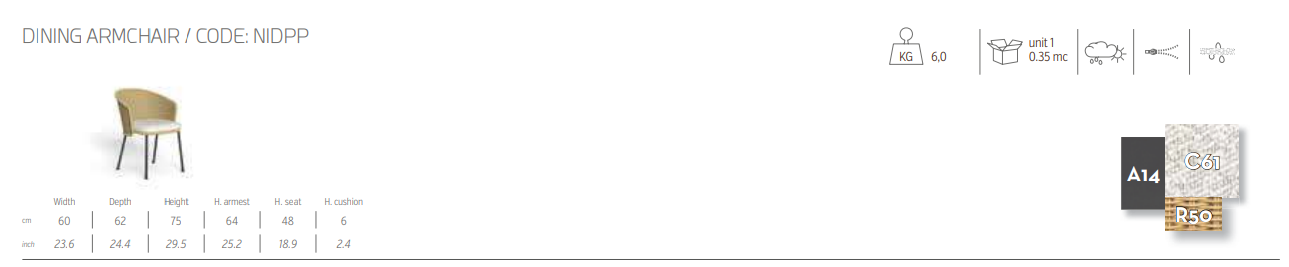 Обеденный стул Nido — это образец элегантного и функционального дизайна, идеально подходящий для украшения любого открытого пространства. Изготовленный из окрашенного металла и плетеной лозы, он обладает удобным и обволакивающим сиденьем. Подушка нейтрального тона создает ощущение комфорта и позволяет расслабиться во время трапезы на свежем воздухе. Изогнутые линии спинки мягко обволакивают вас, создавая уютную и изысканную атмосферу. Кресло Nido идеально подходит для оформления обеденной зоны на открытом воздухе и сочетает в себе эстетику и практичность с неподвластным времени стилем.