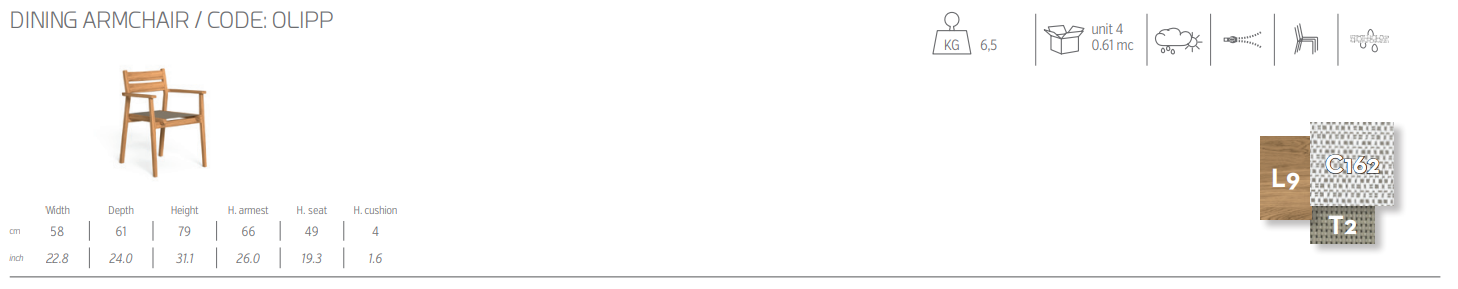 Прочное и в то же время легкое обеденное кресло Oliver отличается продуманным дизайном деревянной конструкции, в которой чередуются полные и пустые пространства, образуя уникальную непрерывную форму, подчеркивающую изысканную текстуру тика. Древесная фактура в сочетании с теплыми тонами белых подушек создают теплую и гостеприимную атмосферу, идеально подходящую для того, чтобы пережить моменты расслабления и веселья в саду или на открытом воздухе.
