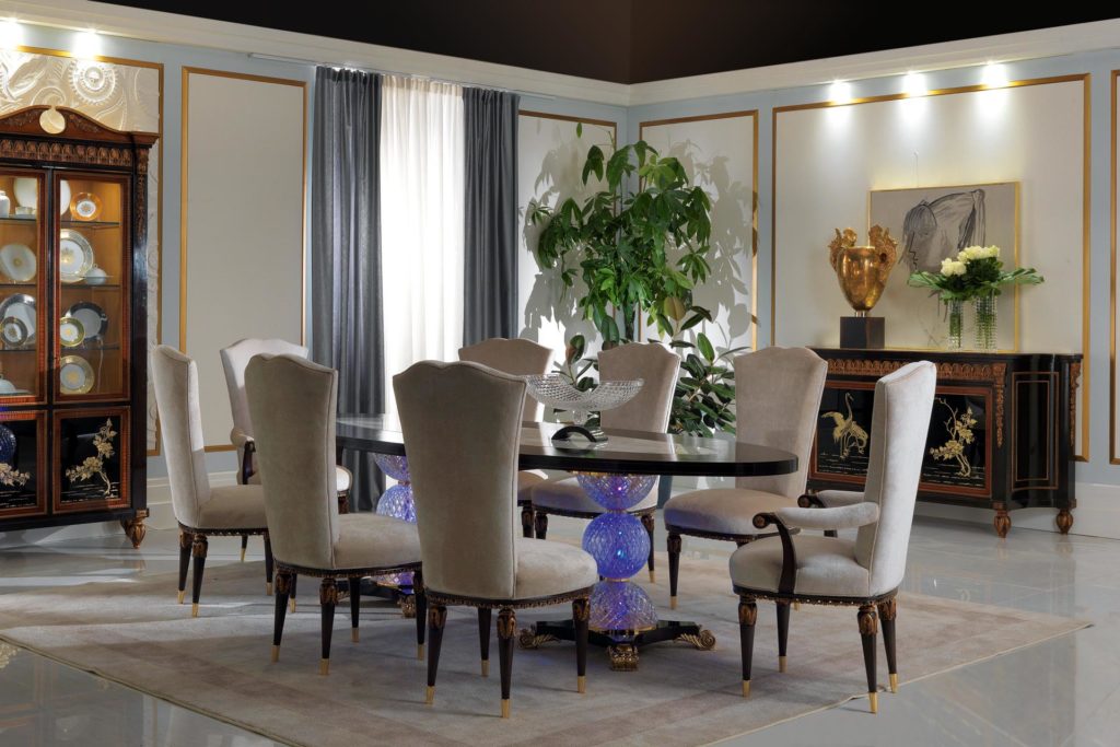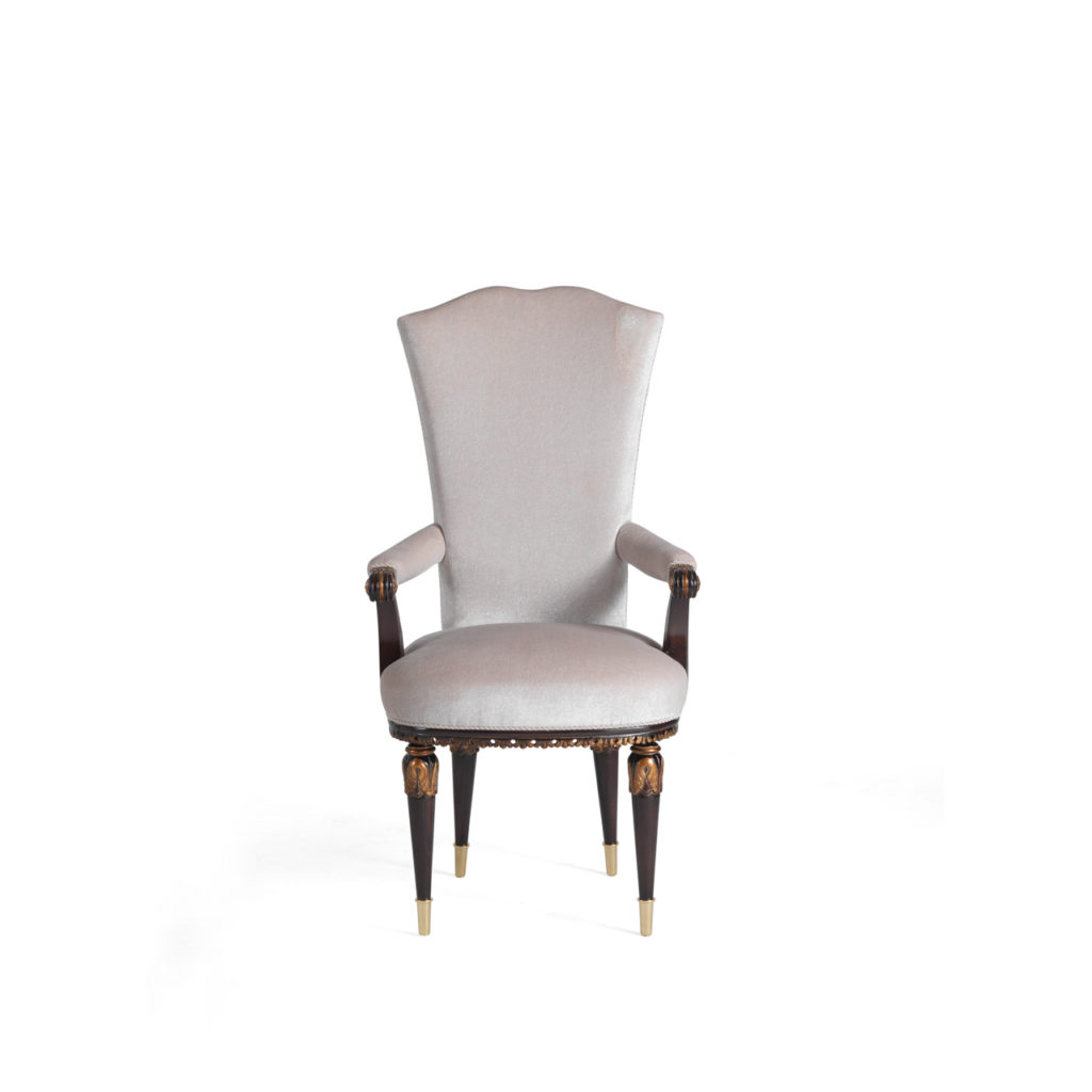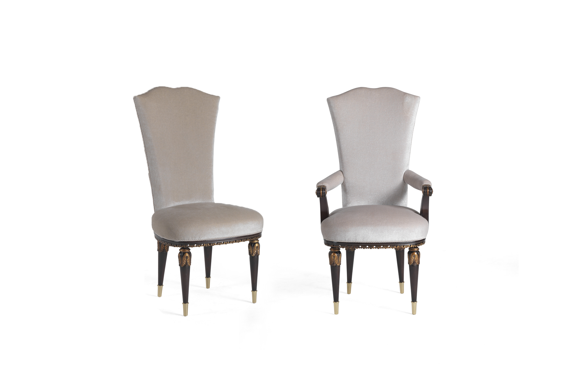 Стул в неоклассическом стиле из массива дерева с резьбой, украшенной сусальным золотом, украшенный тонкими металлическими пинталями на ножках, доступен в версии с подлокотниками P/4600 и без подлокотников S / 4600.