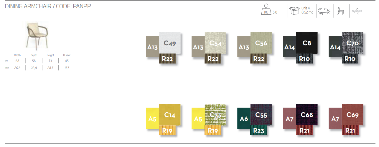 Обеденный стул из коллекции Panama — идеальное решение для обедов и ужинов на свежем воздухе. Легкая алюминиевая конструкция украшена переплетающимися морскими канатами, которые выражают всю элегантность коллекции, сохраняя функциональность изделия. Подушки из 100% уличных тканей, доступные в различных цветах, дополняют изделие, придавая ему индивидуальность и элегантность.