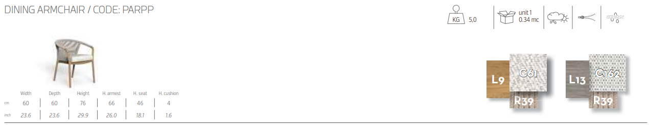 Обеденное кресло Parker сочетает в себе стиль и функциональность и идеально подходит для придания любой обеденной зоне нотки современной элегантности. Конструкция выполнена из тикового дерева с двумя вариантами отделки, что позволяет адаптировать ее к различным условиям. Спинка и подлокотники выполнены в мягких и привлекательных линиях, а мягкое сиденье обеспечивает комфорт во время еды. Подушки придают этому креслу изысканный и привлекательный вид, что делает его идеальным выбором для тех, кто ищет комфорт и дизайн в одном флаконе.