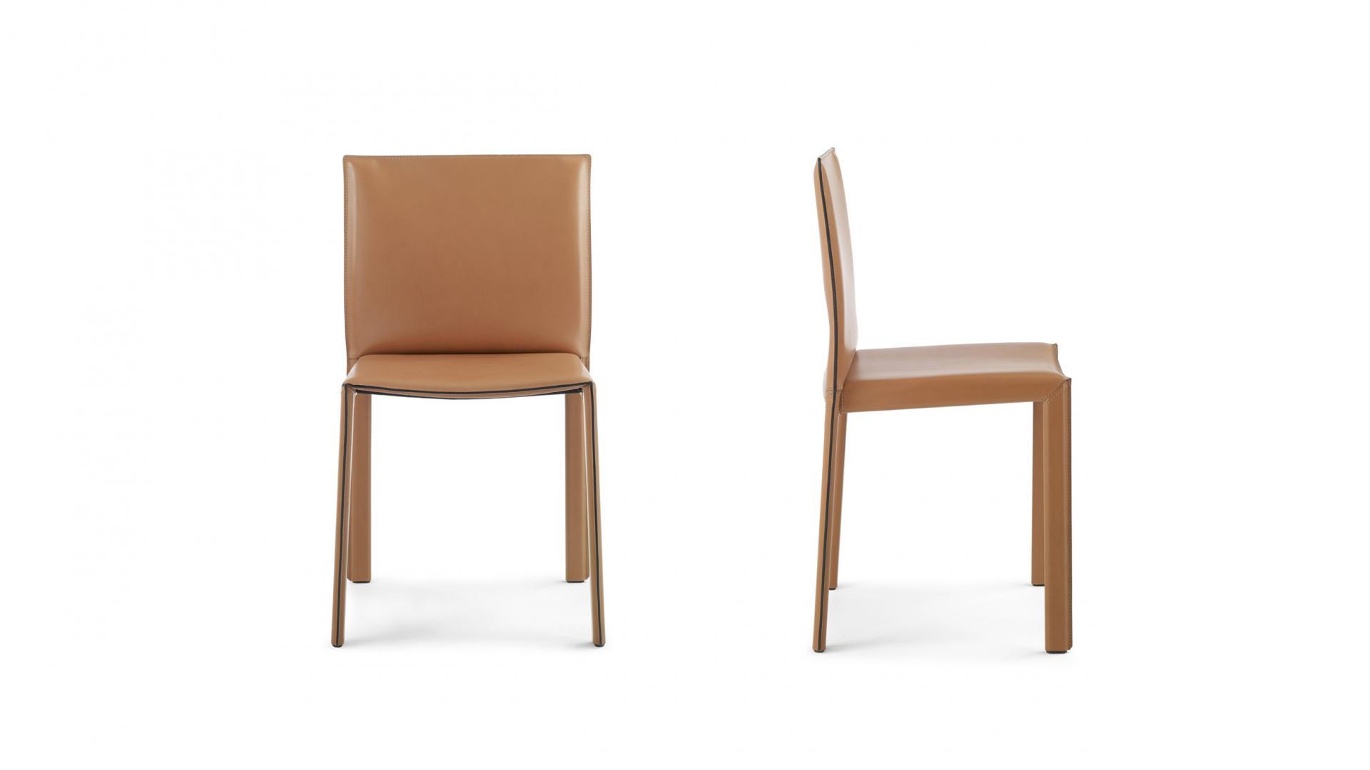 Металлическая трубчатая конструкция круглого сечения с сиденьем и спинкой из многослойного дерева, обтянутыми кожей. Легкое, удобное, универсальное сиденье с элегантным сочетанием материалов.