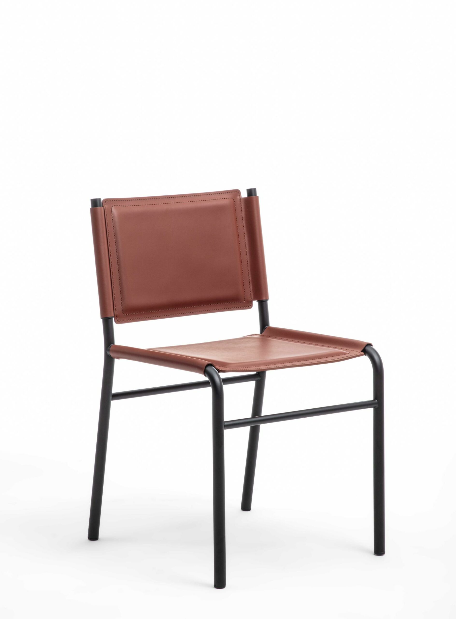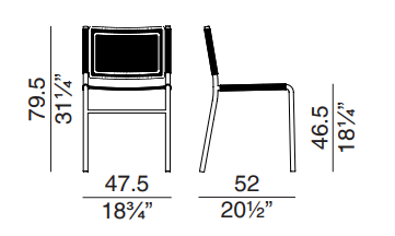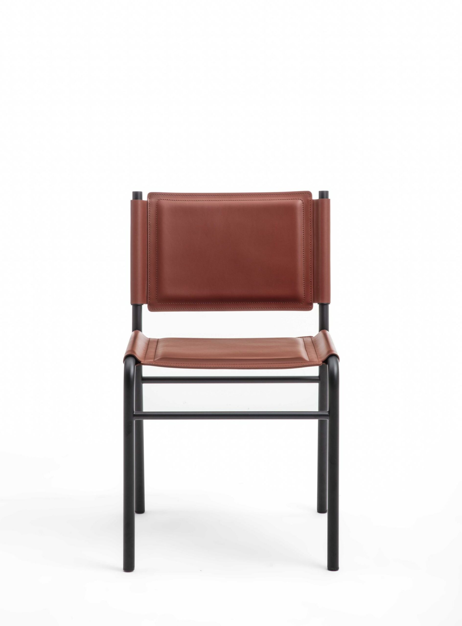 Стул с трубчатым стальным каркасом, окрашенным в различные цвета. Сиденье и спинка с мягкой обивкой из кожи CPF или CTT.