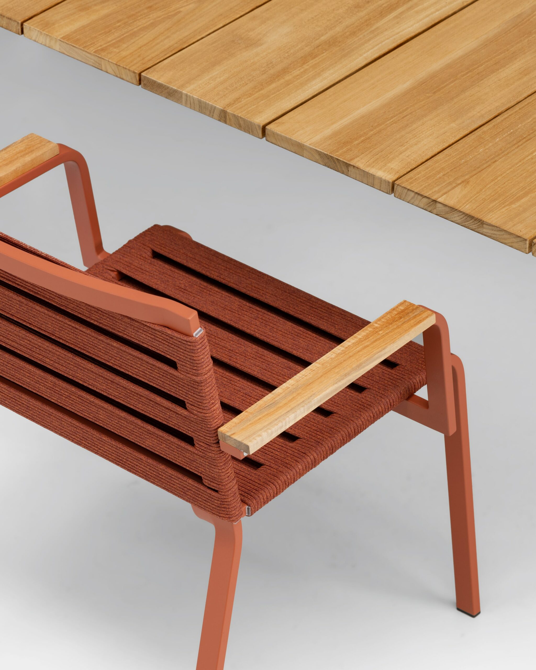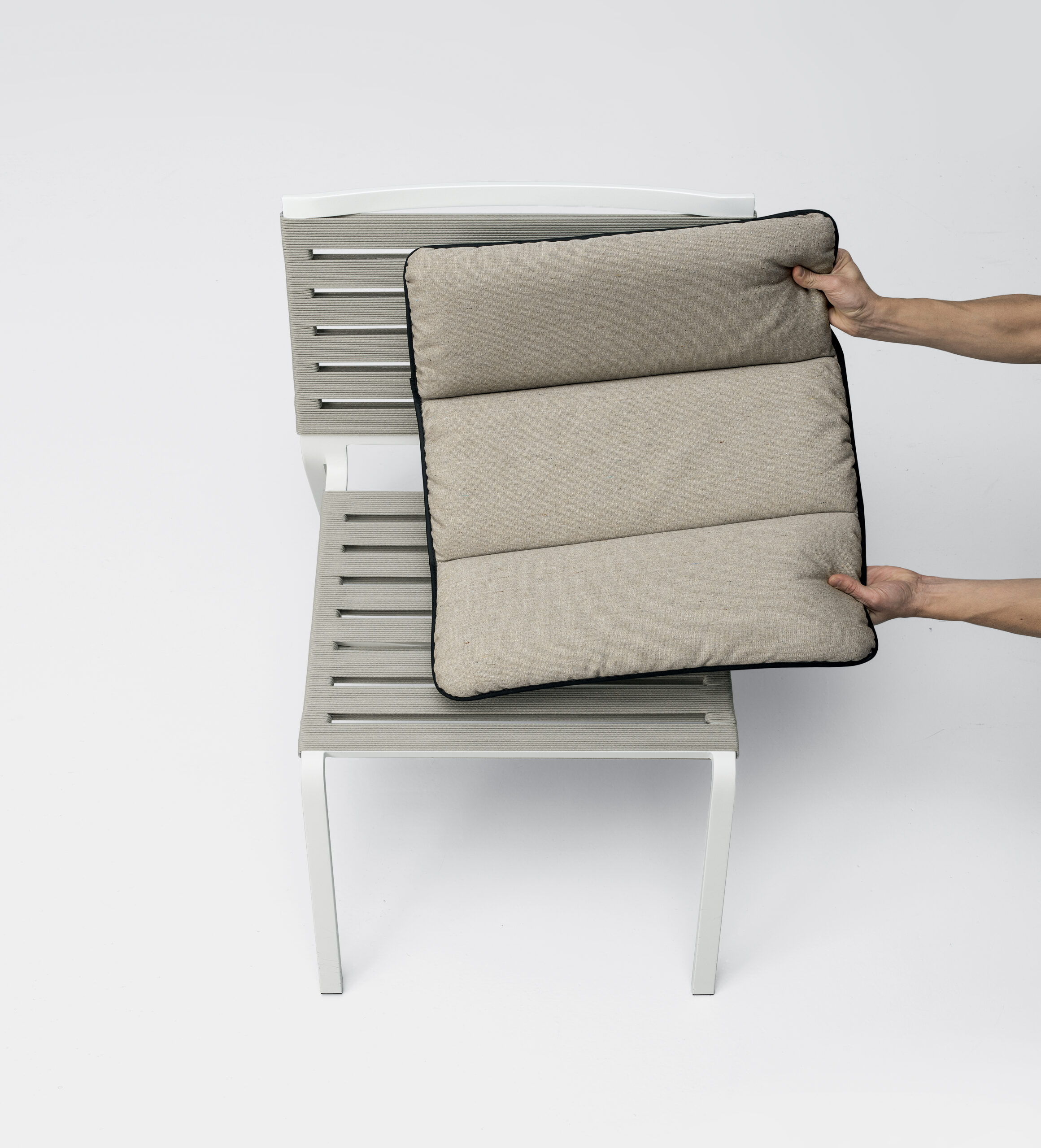 Прочная меланжевая пряжа обеспечивает долговечность и устойчивость к внешним воздействиям. Дополнительные аксессуары, такие как съемная обивка и тиковое дерево, делают стул еще удобнее и стильнее. Идеально подходит для террас, садов и зон отдыха.