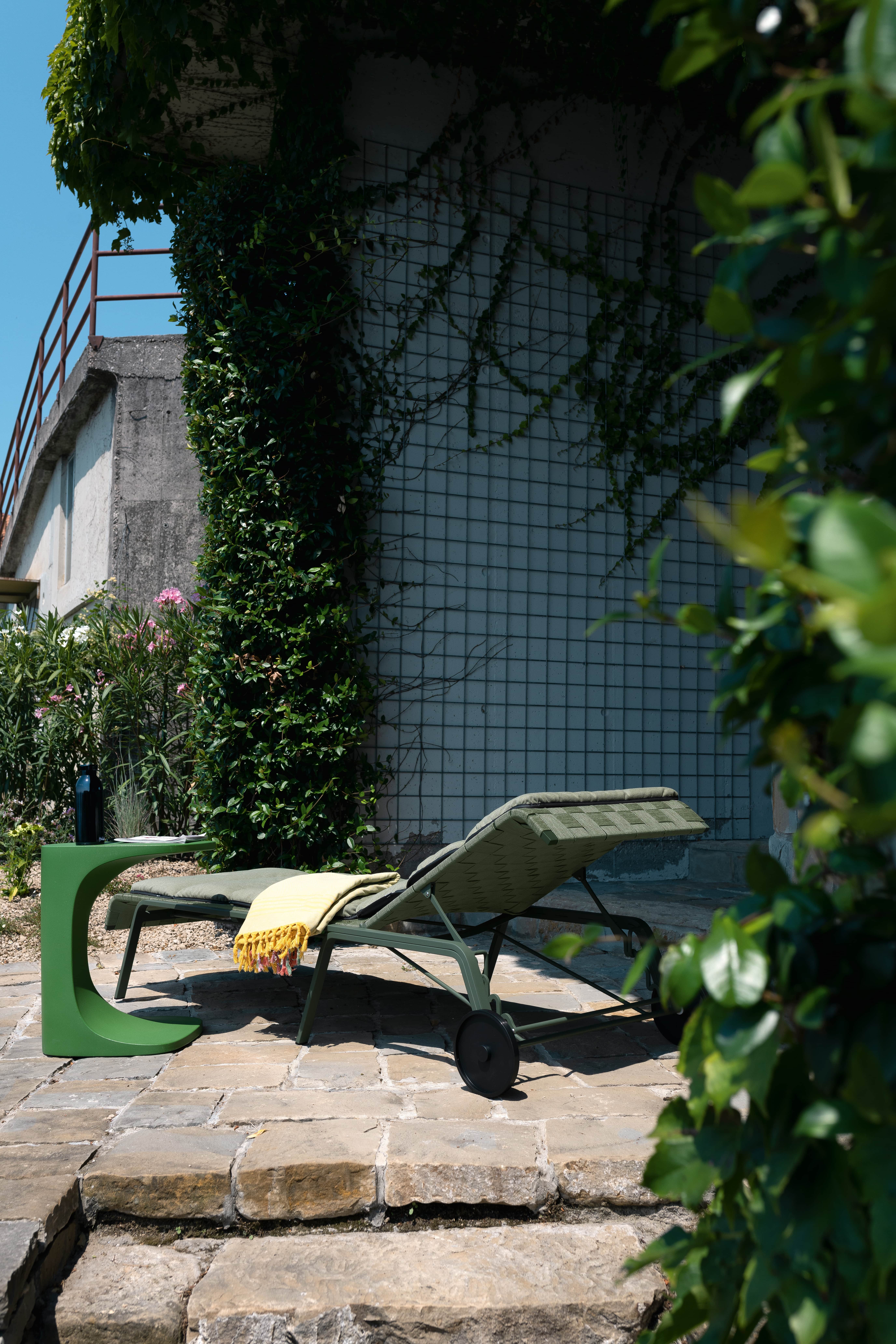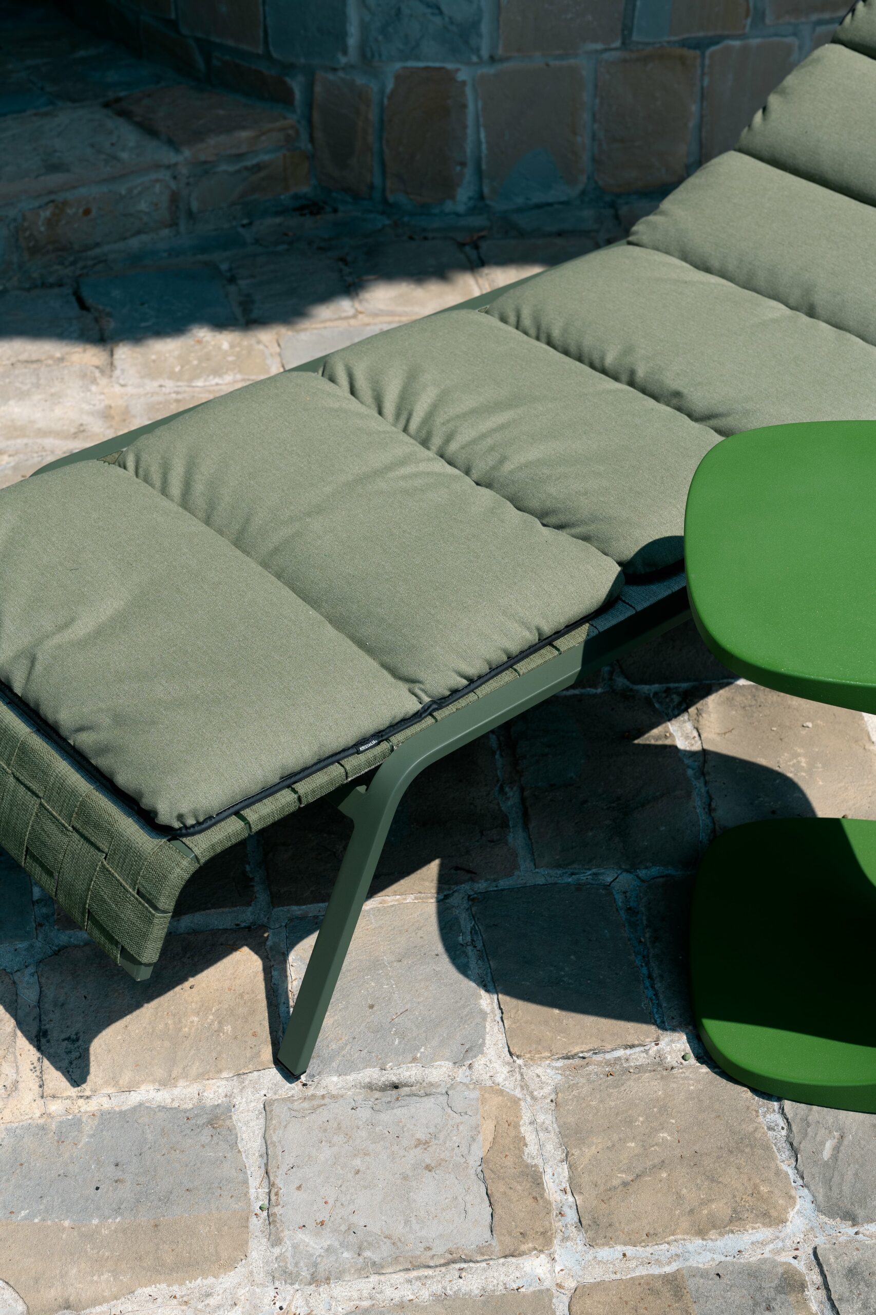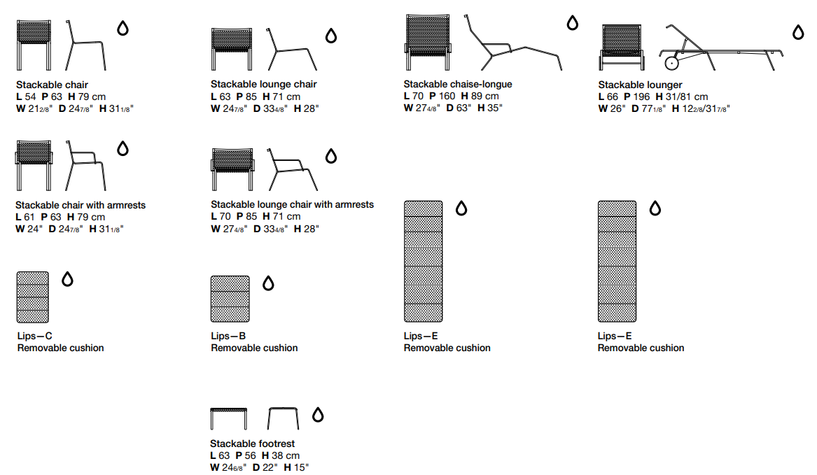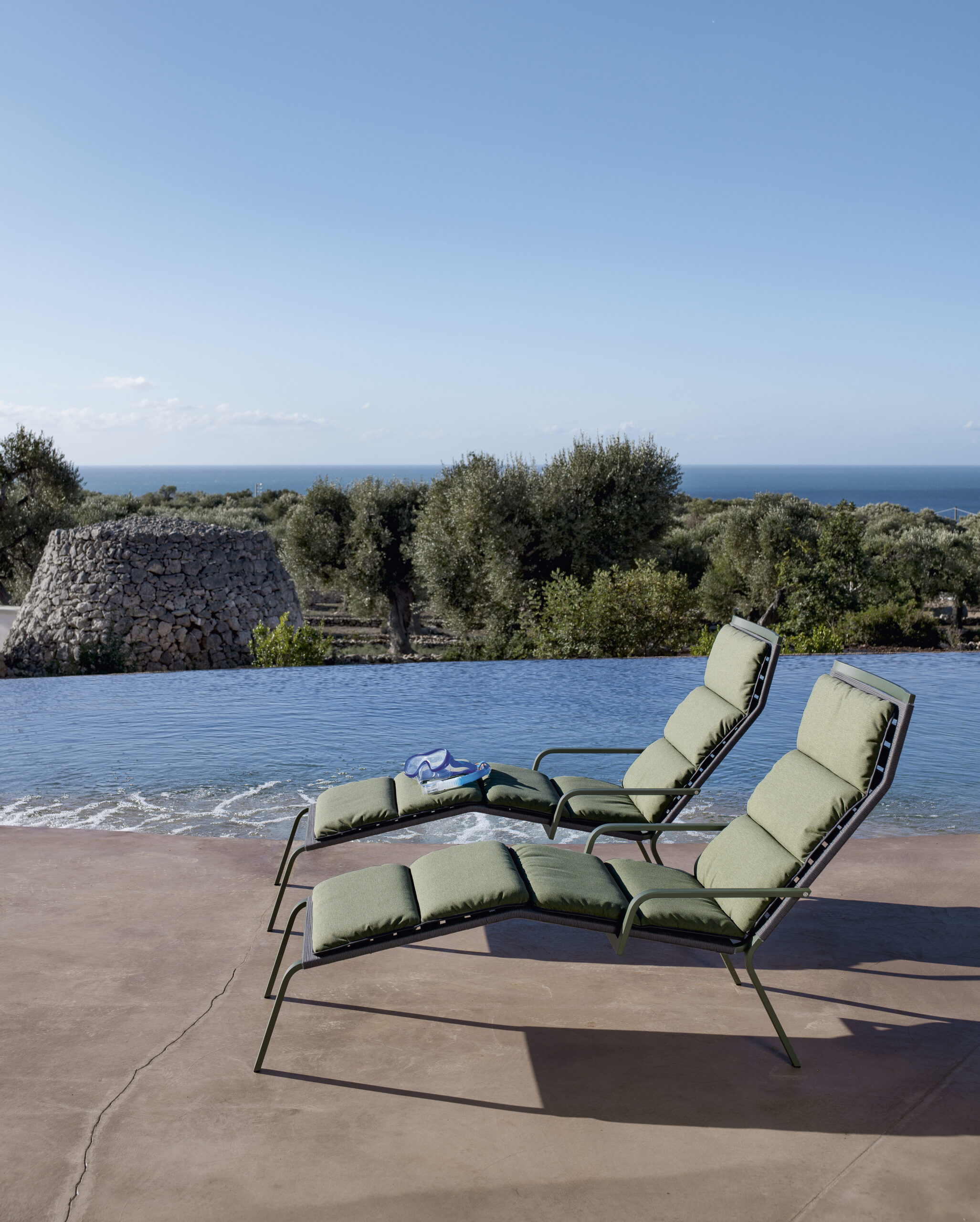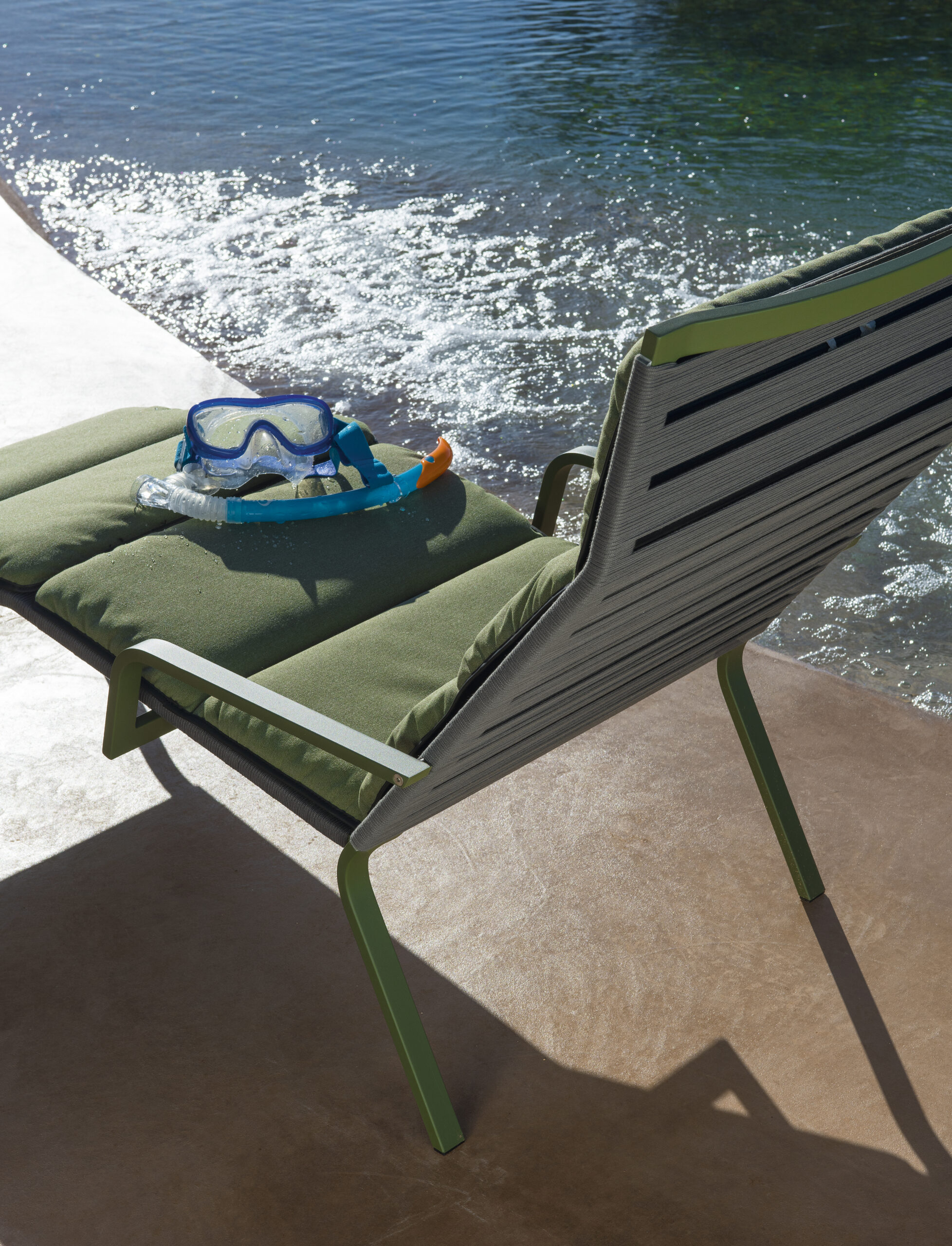 В 2010 году компания Harry-Paul разработала целую коллекцию складываемых сидений на открытом воздухе: шезлонги и кресла с подлокотниками или без них, шезлонг-лонжерон и шезлонг на колесиках. Десять лет спустя компания Kristalia произвела революцию в выборе цветов и комбинаций, выпустив пять цветов для наружной алюминиевой рамы с порошковым покрытием — белый, черный, терракотово–коричневый, оливково–зеленый и лондонский серый — и пять цветов для ремешков и шнурков, доступных в бежевом, терракотово-коричневом, зеленом, сером и черном цветах для создания тон в тон или контрастные сочетания. Пряжа, обладающая еще большей прочностью и высокими эксплуатационными характеристиками, создает эффект меланжа. Элементы для отдыха можно сделать еще более удобными и привлекательными, добавив съемную обивку. Новый аксессуар из тикового дерева, который вставляется в подлокотник и идеально сочетается со столами из тикового дерева.