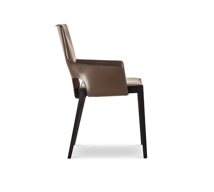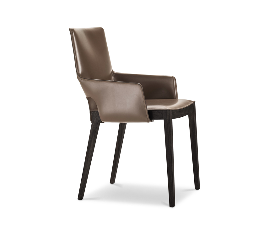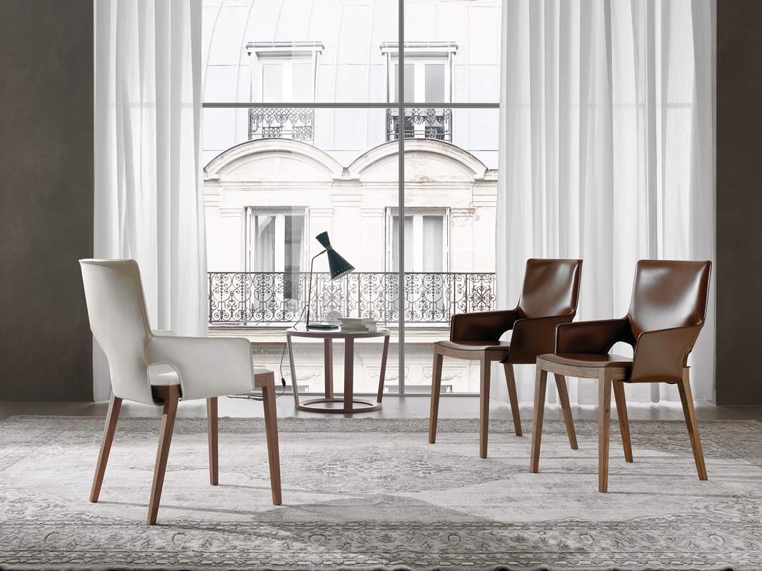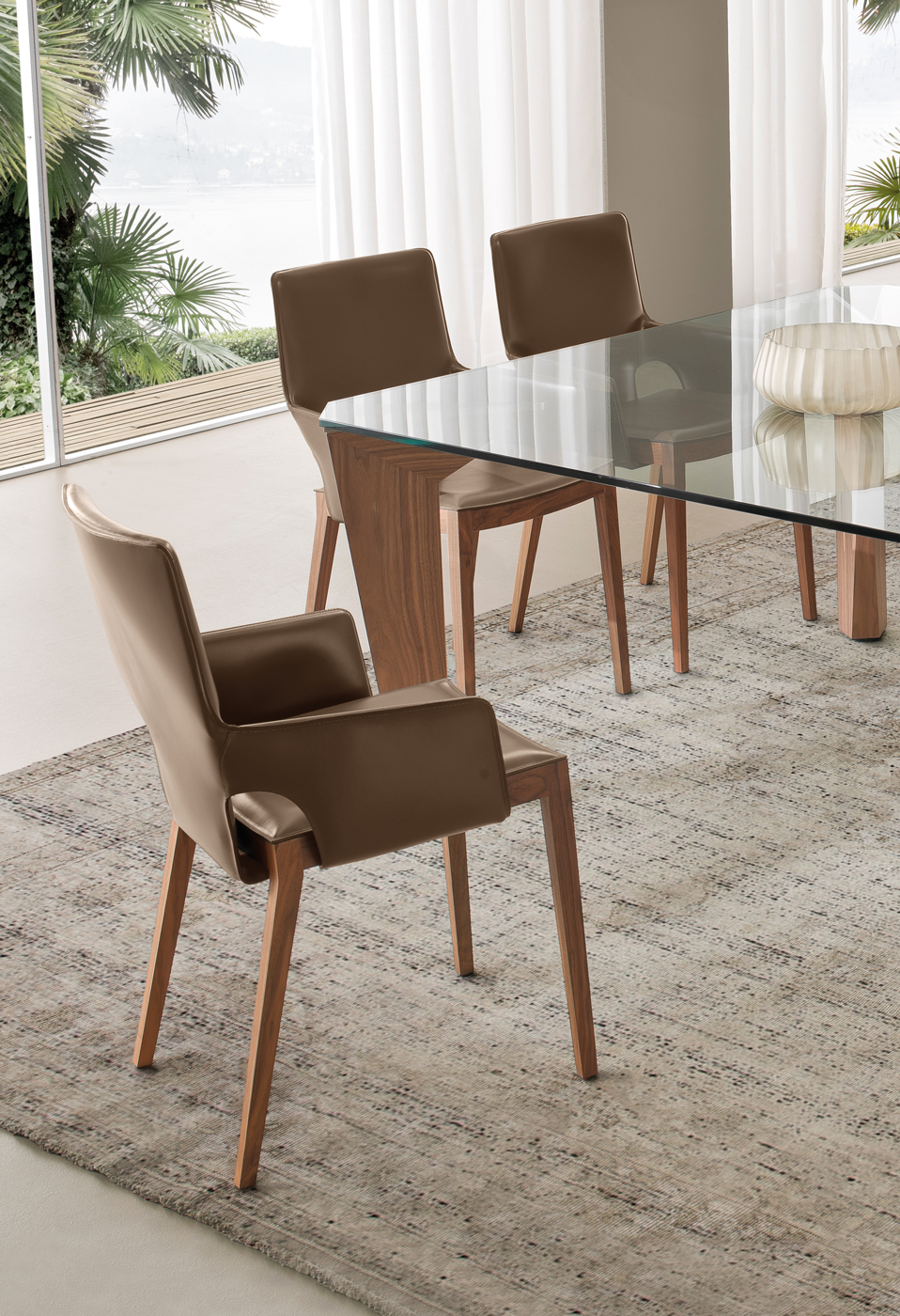 Кресло Shu отличается оригинальным дизайном с плавными и утонченными линиями. Его элегантность отличается утонченностью и отсутствием излишеств, что делает его подходящим для любой обстановки: это элемент мебели в стиле паспарту, который вписывается как в домашнюю, так и в общественную обстановку. Он выполнен из цельного массива черного ореха или ясеня с графитовым оттенком, на котором установлено сиденье с мягкой обивкой из пенополиуретана, обтянутое седельной кожей. Его легкость навеяна изначальным элементом Шу, символом воздуха, дающего жизненную силу.