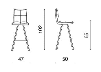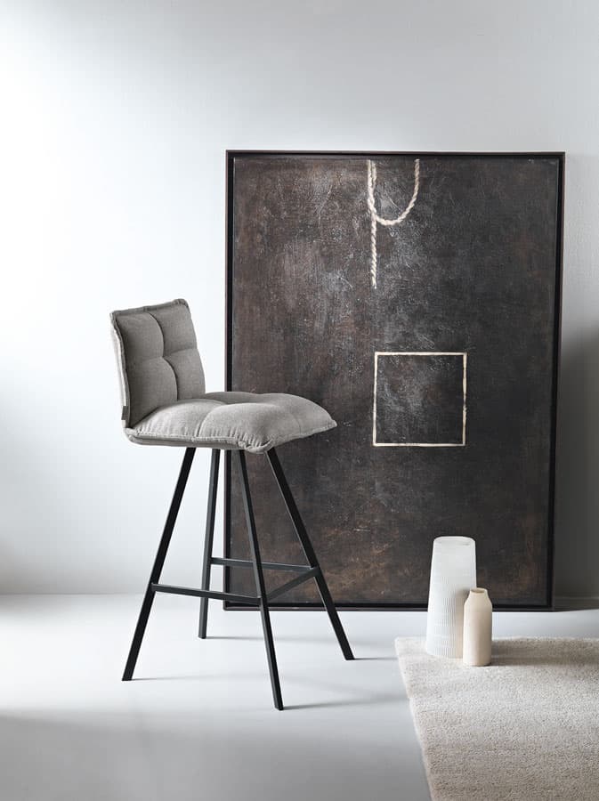 Табурет с окрашенной металлической рамой и сиденьем из мягкой ткани.