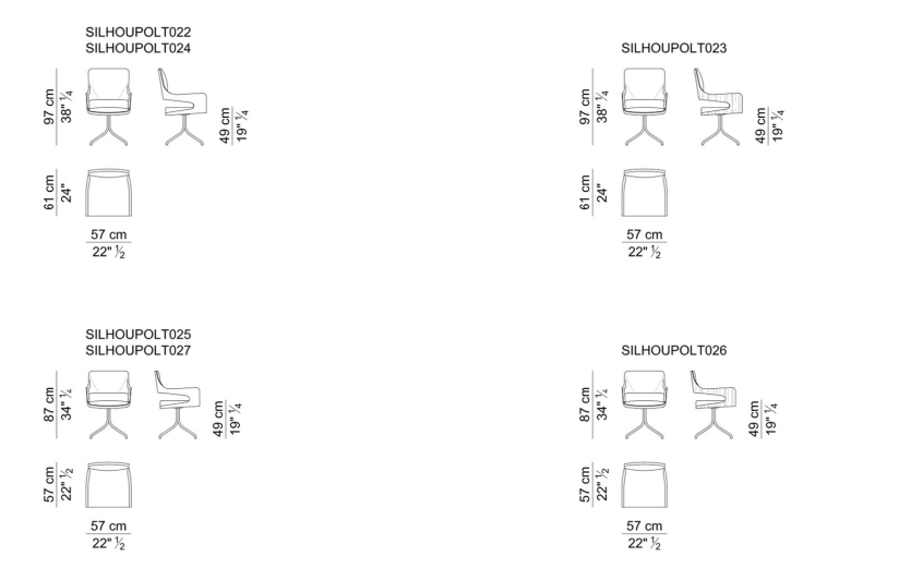 Больше, чем общая форма этой коллекции кресел, в памяти остаются их профиль, очертания, форма, тень и “силуэт”.