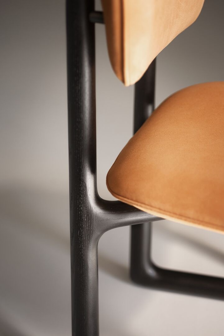 Stig — cтул с кожаной обивкой от Роберто Лаццерони; его дизайн вдохновлен ироничной мебелью авторства Жана Руайера. Отличительным элементом кресла является основание, которое приобретает скульптурный характер и делает это миниатюрное произведение из красного дерева неповторимым и легко узнаваемым. Это массивные полозья из ясеня, окрашенного в венге, которые, поднимаясь, поддерживают сиденье и спинку. Две подушки, обтянутые кожей, мягко ложатся на каркас и приглашают испытать необычайный комфорт этого изящного стула.