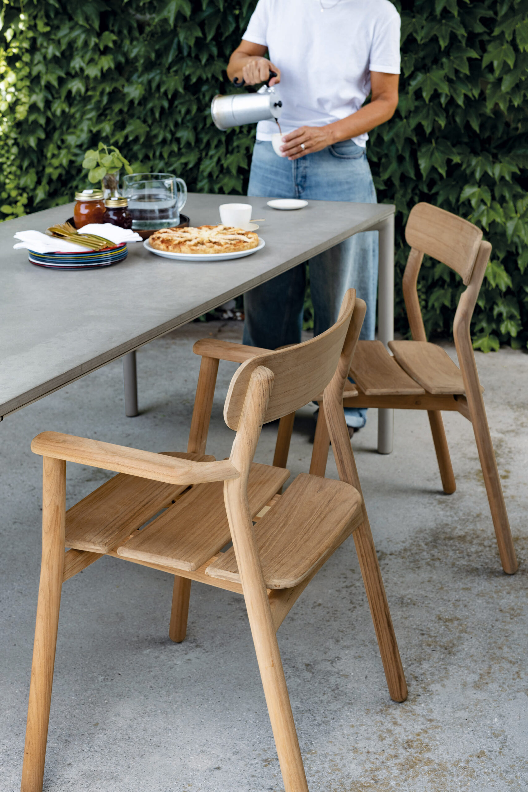 Stria — это переосмысление классических мотивов через призму современного дизайна. Основой его эстетики стали ламели из тикового дерева, которые, благодаря мастерству итальянских дизайнеров, обрели мягкие округлые очертания. Такой подход создает эффект легкости и воздушности, несмотря на монументальность конструкции. В складной директорской версии стул дополнен мягкой обивкой, подчеркивающей его эргономичность и комфорт.