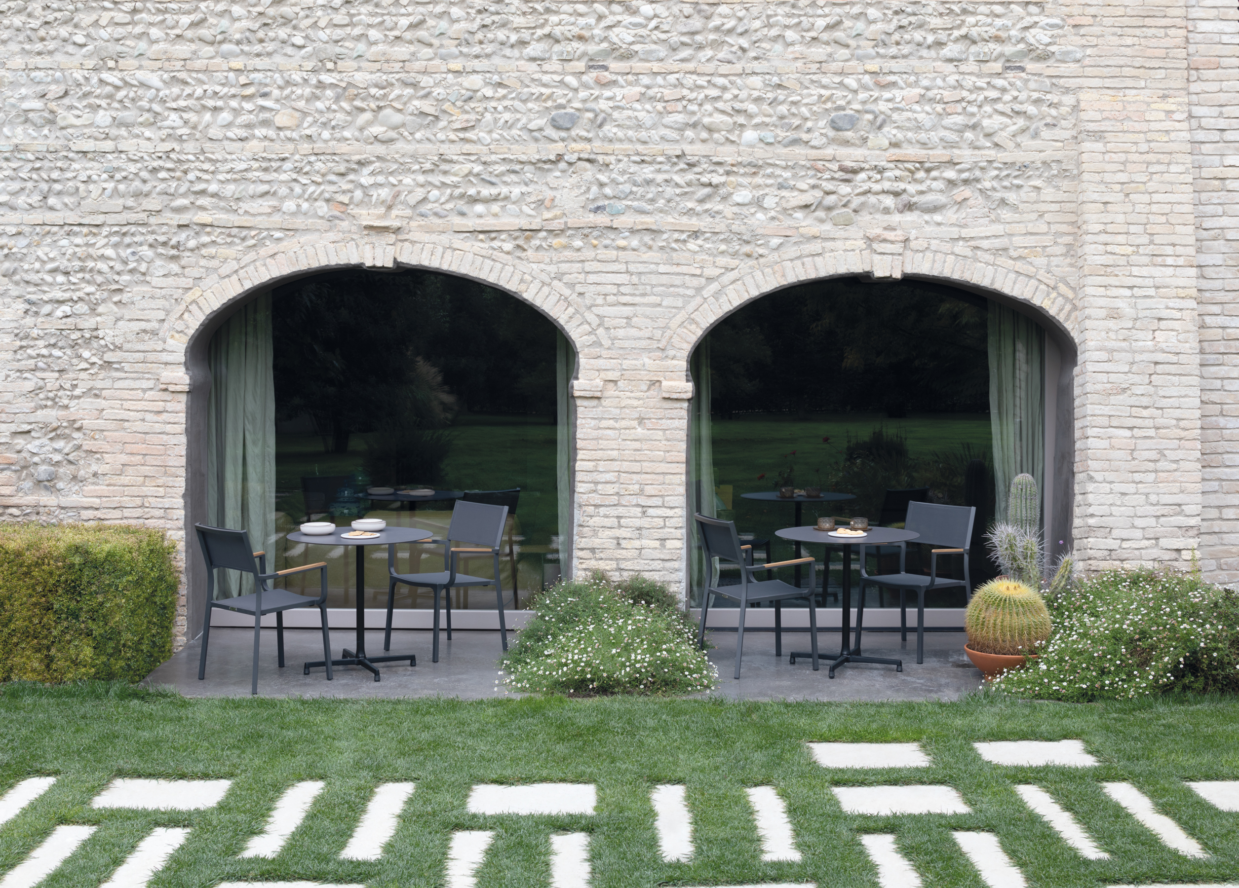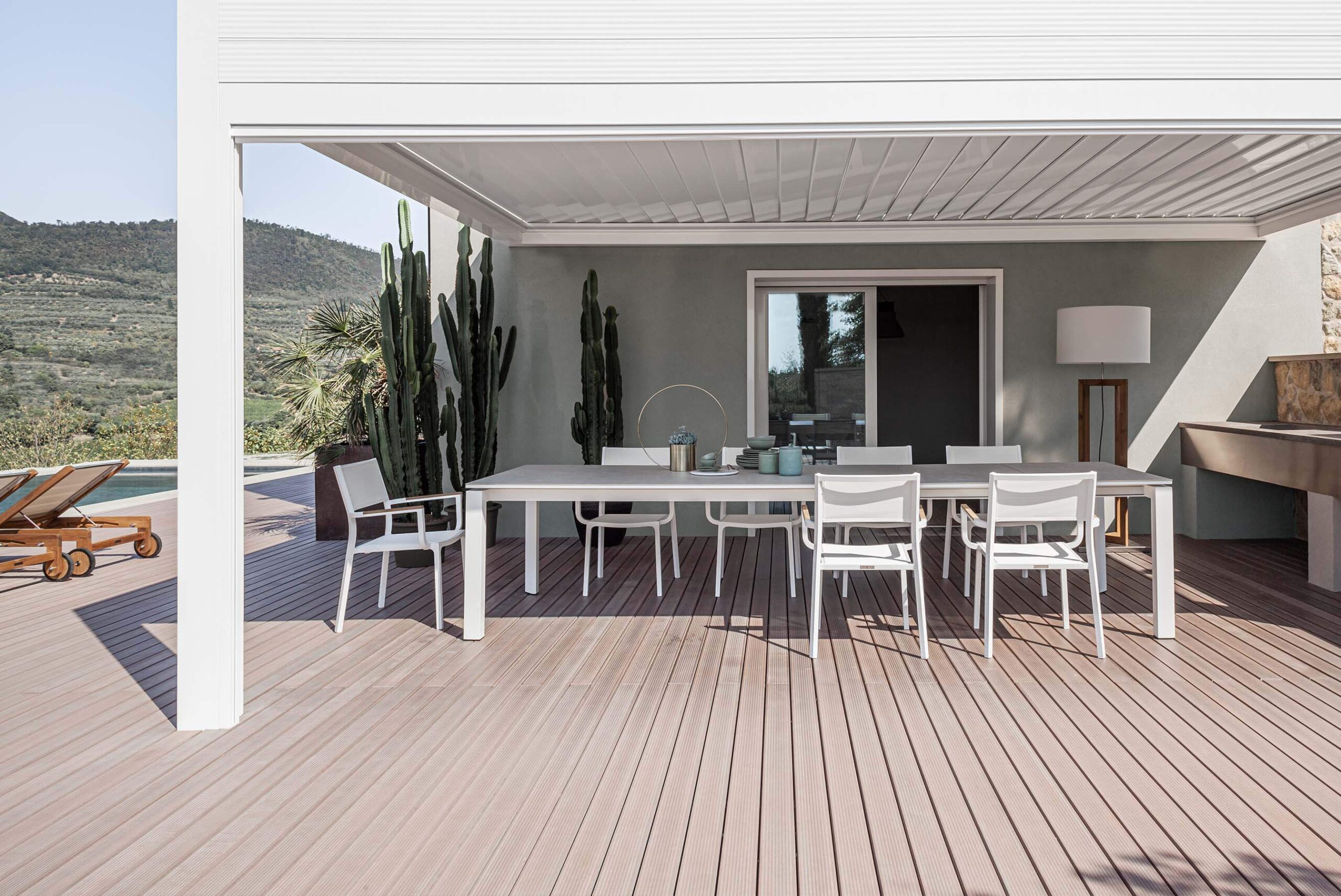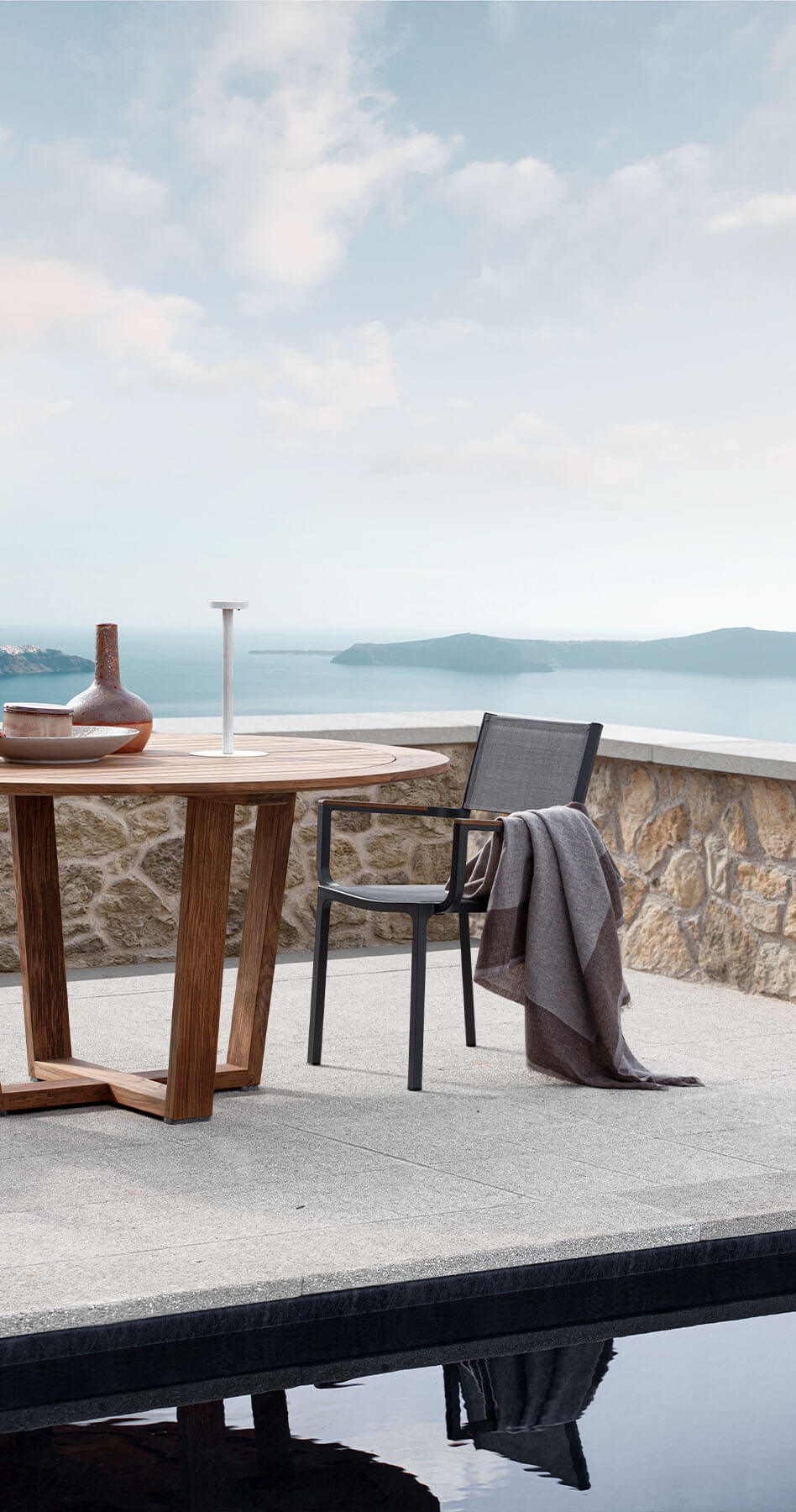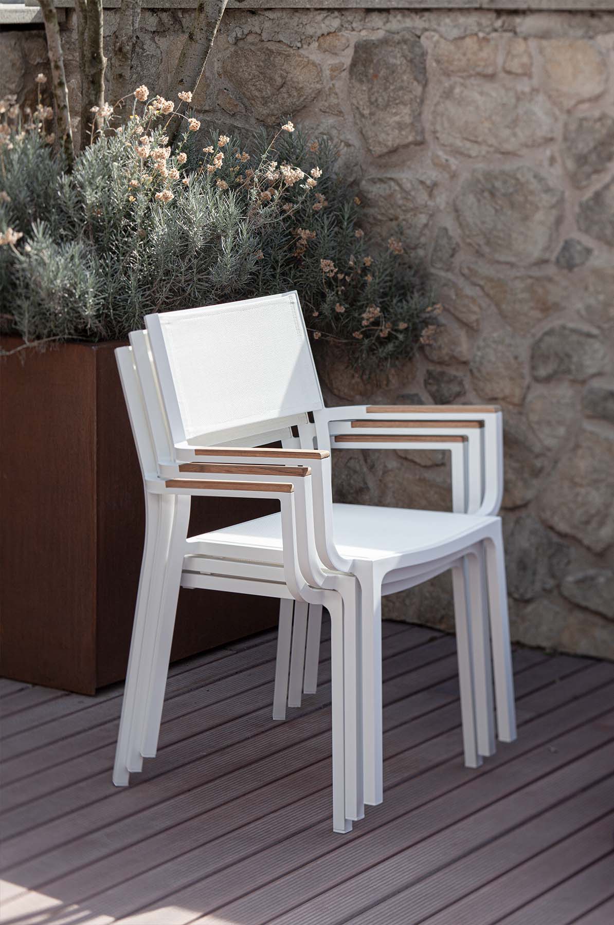 Простая элегантность и неподвластная времени естественность с подчеркнутым вниманием к деталям. Вставки из тикового дерева сочетаются с термосвариваемым тексиленом белого или графитового цвета, стойким к атмосферным воздействиям.