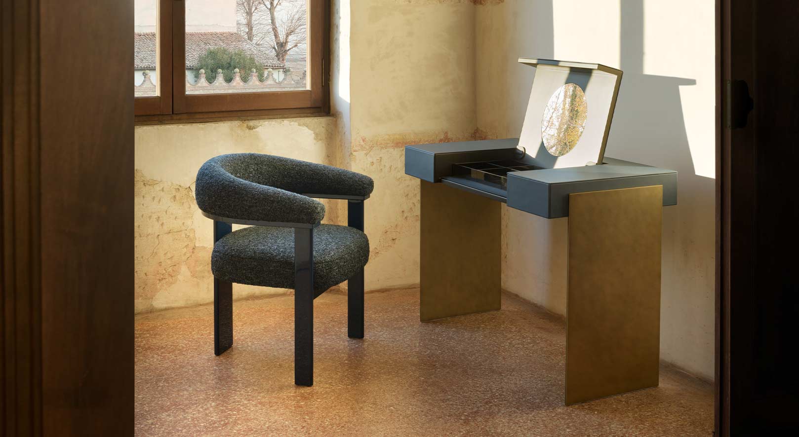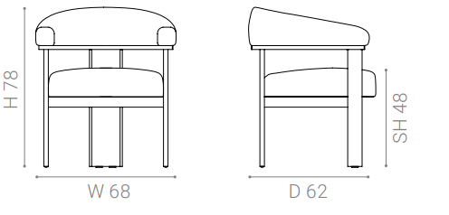 Простые линии и геометрический контур конструкции создают идеальную опору для округлой подушки сиденья. Спинка визуально напоминает круглую скобу, что создает приятную округлость гармоничных и сбалансированных пропорций.