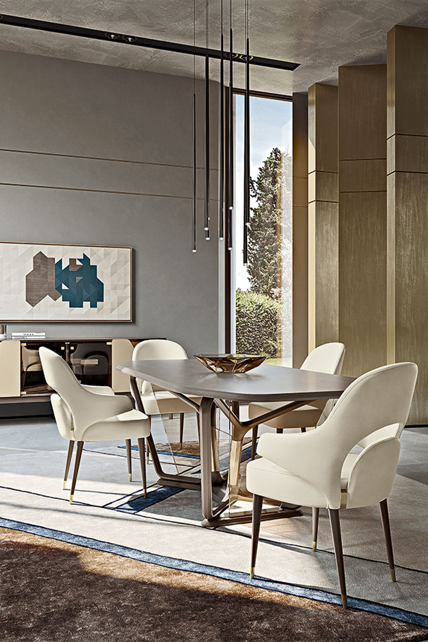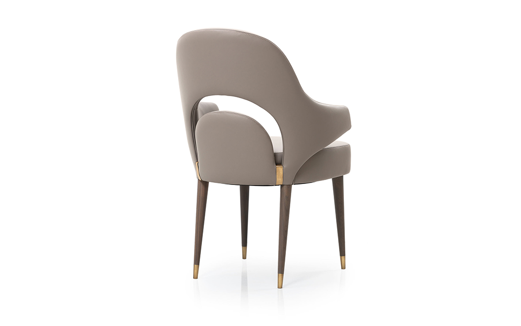 Итальянский стул Vine от фабрики TURRI — элегантное решение для интерьера в духе итальянского дизайна. Модель отличается арочной спинкой с выразительным силуэтом и закрытой конструкцией, напоминающей крылья. Подлокотники обеспечивают комфорт, а ножки из натурального дерева с золотистыми металлическими деталями добавляют роскошный акцент.