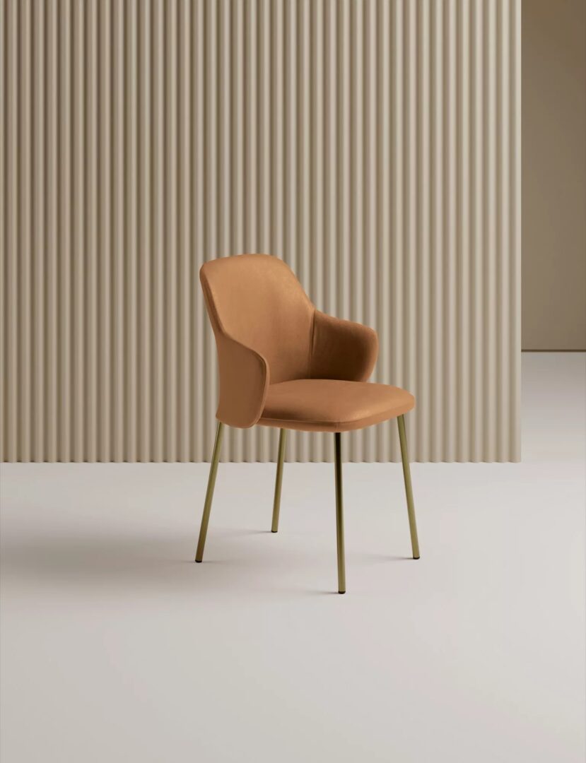 Стул со структурой из лакированной стали с монолитным сиденьем в обивке