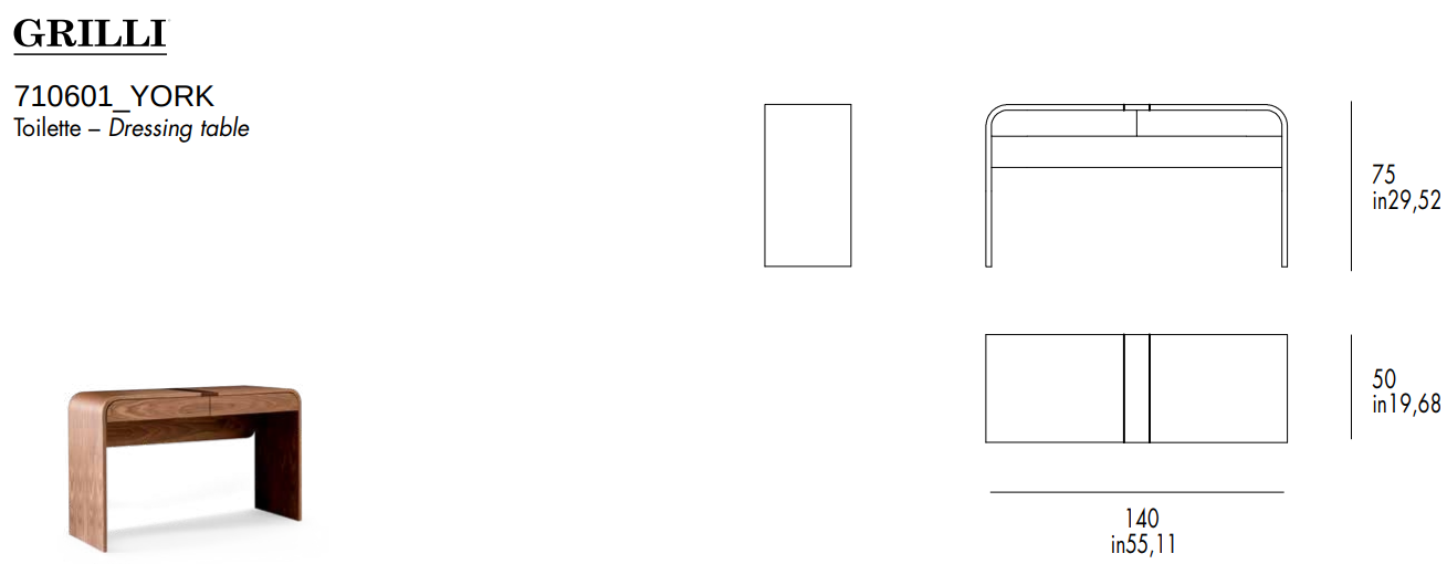 Туалетный столик с 2 ящиками с многослойной структурой, облицованной эссенцией, спереди из кожи