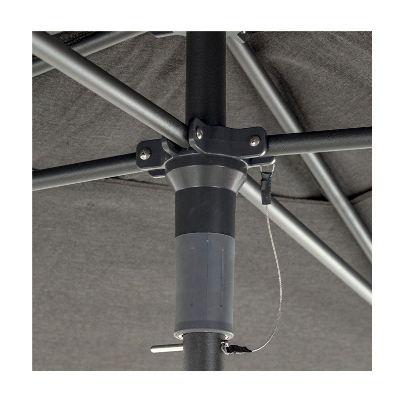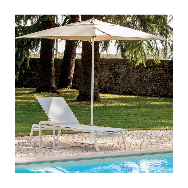 Этот выдвижной алюминиевый зонт прекрасно подходит для небольших помещений, таких как балконы и плавательные бассейны. Его цельная стойка диаметром 38 мм достаточно устойчива и прочна, чтобы выдерживать ветер 8-й степени в летнее время. Покрытие из олефина. Опционально: стальной цоколь на колесах или бетонный цоколь.
