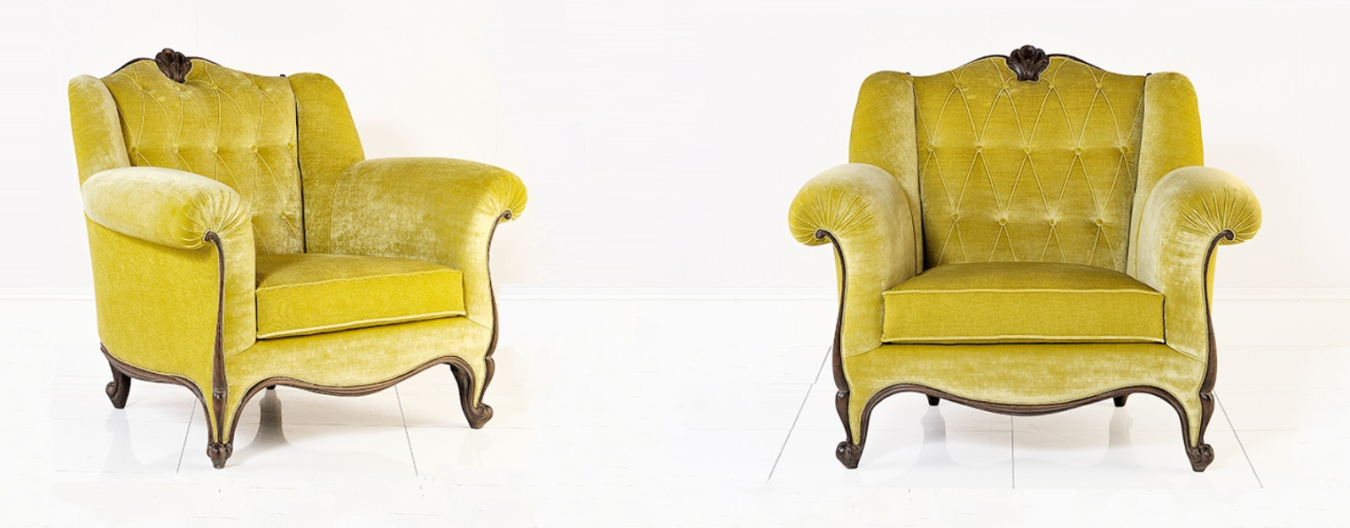Кресло «Albert» с массивной дубовой рамой и спинкой capitonnè.