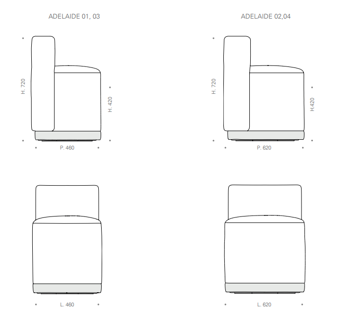 Кресла Adelaide отличаются элегантностью и комфортом. Доступные в двух конфигурациях, Первая характеризуется кожаной спинкой и нижней полосой с конической конструкцией, обеспечивающей оптимальную поддержку, и поворотным основанием для универсальности. Идеально подходит для дома и офиса, добавляет нотку современности. Вариант Adelaide Soft, с другой стороны, полностью покрыт тканью, с мягкой спинкой для превосходного комфорта. Эта версия также имеет вращающуюся основу, что делает ее идеальной для различных контекстов, включая пространства рядом со столом, где стиль и практичность встречаются.