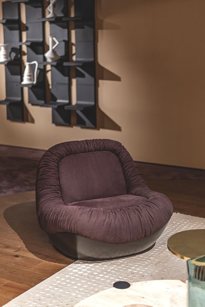 Кресло Barret от дизайн-студии Draga&Aurel дополняет идею комфорта благодаря очень большому сиденью, окруженному жестким каркасом, который по-новому интерпретирует сложные формы мебели 1970-х годов. Это вращающееся кресло, отличающееся эргономичным и благородным дизайном, украшено мягкой кожаной обивкой с завитками, которая делает обивку еще более приятной на ощупь. Низкое, глубокое и обволакивающее сиденье превращает Barret в изысканное убежище, гнездышко, в котором можно максимально расслабиться.