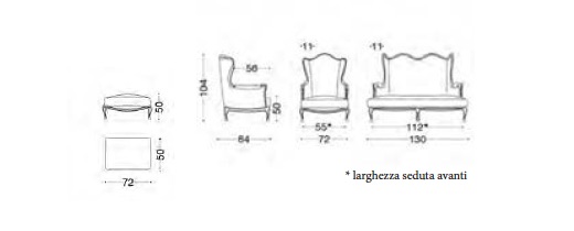 Варианты: кресло, 2-местный диван и пуфик. СТРУКТУРА: дерево и его производные, высокие перекрестные эластичные ремни сопротивление. Обивка: пенополиуретан по разным квотам и качеству полиэфирные волокна. На запрос, вы можете настроить прокладки. Особенности: отделка деревянной рамы он доступен в цветах, предусмотренных в каталоге.