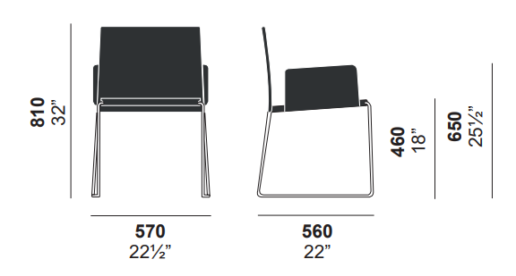 Кресло с подлокотниками, с каркасом из хромированного или окрашенного стального стержня (ø12 мм); сиденье и спинка обиты различными материалами; нескользящие нейлоновые ножки, подседельный штырь с переплетенными эластичными ремнями (стандарт); чехол для сиденья из листовой технической ткани черного цвета.