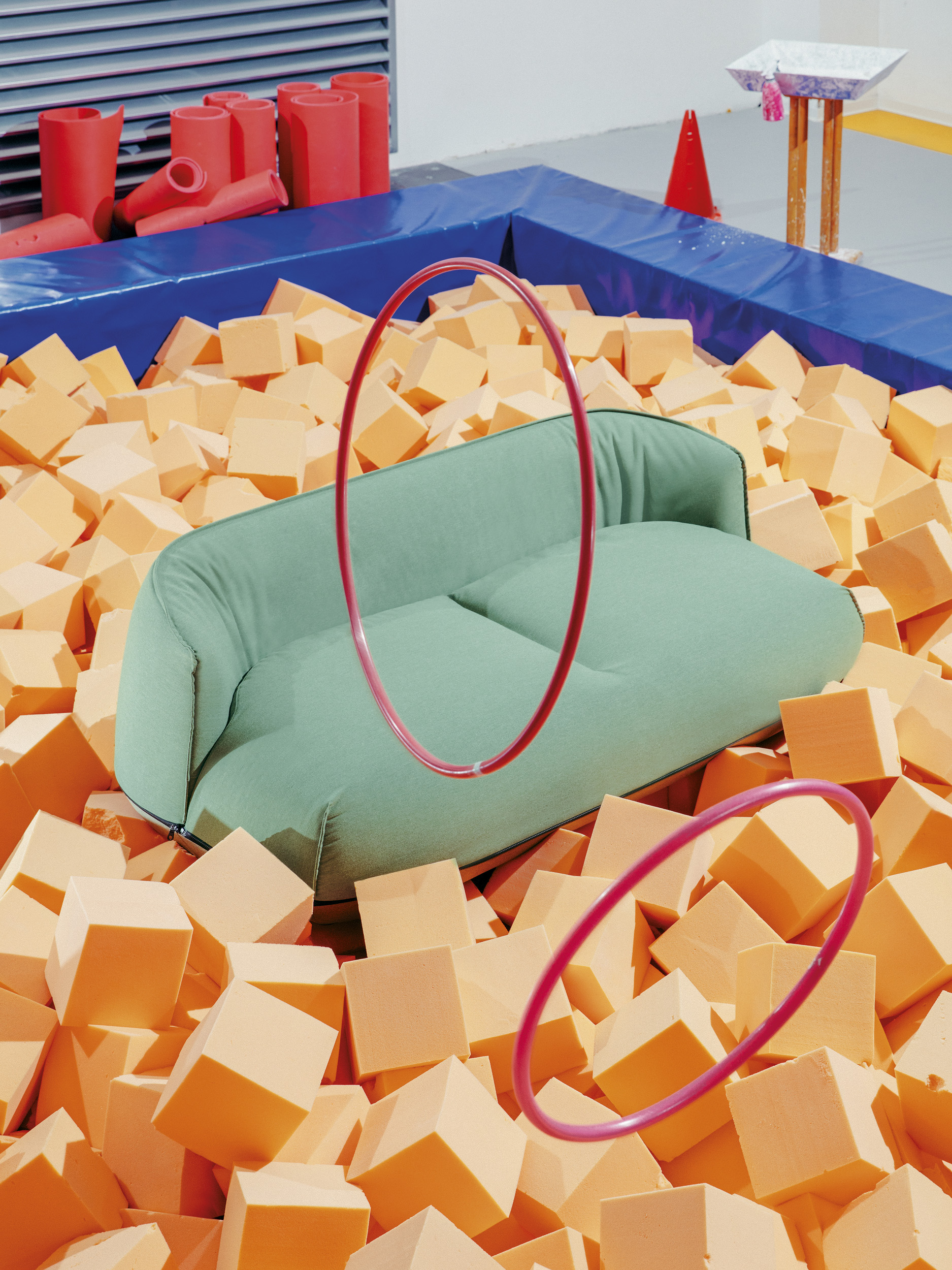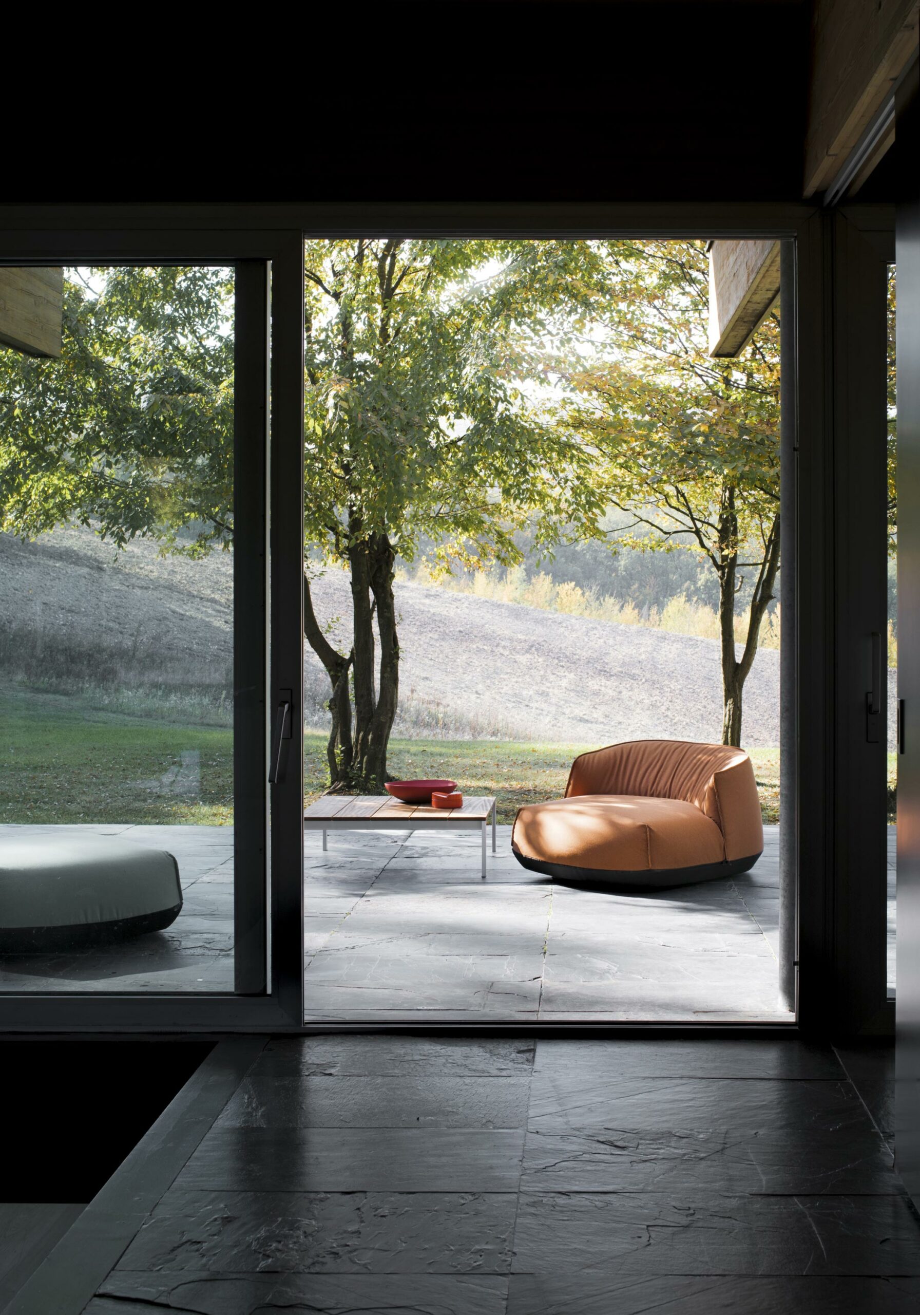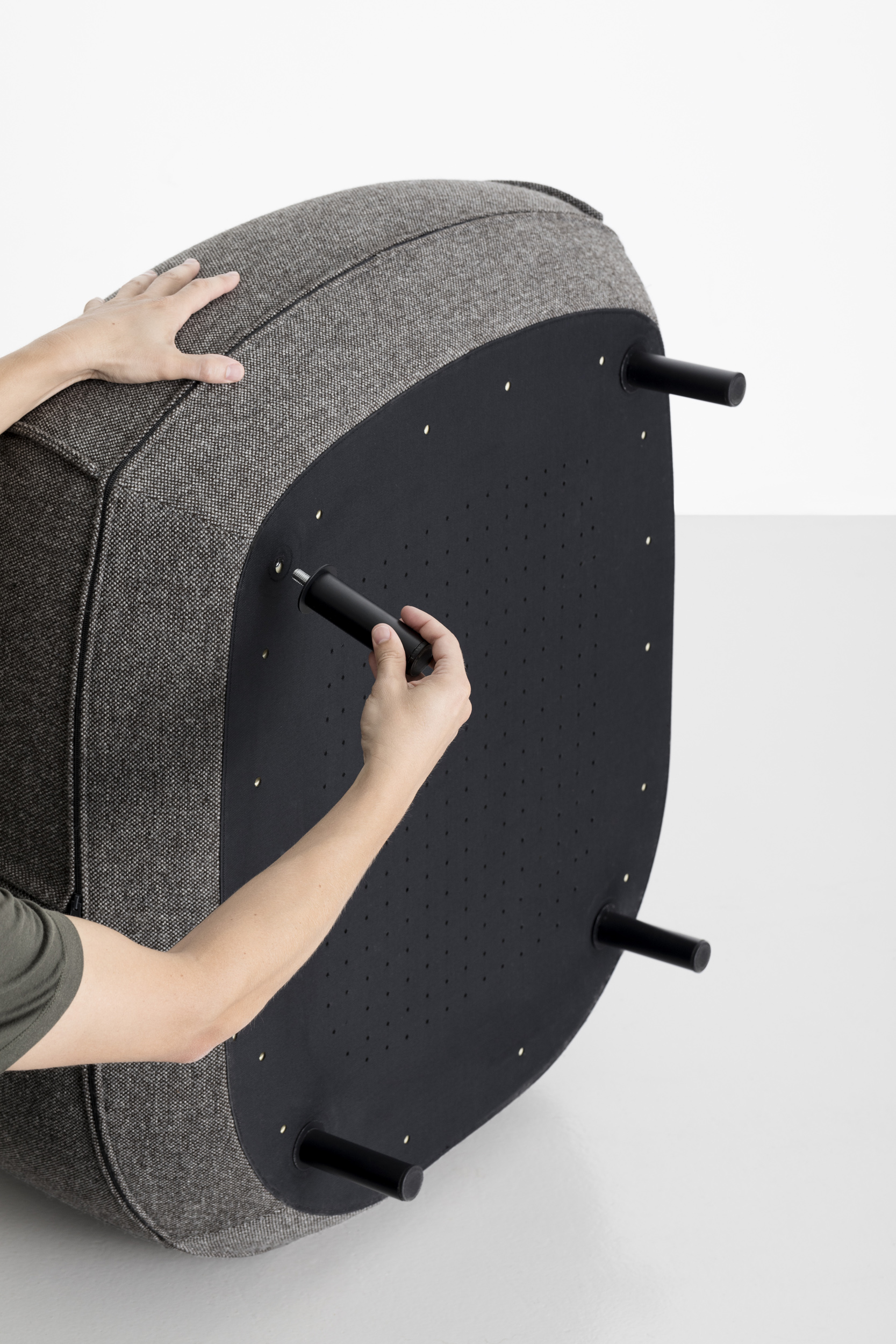 Обивка доступна в различных вариантах, включая модели с контрастной полосой в нижней части, что придает мебели стильный акцент. Кресло отличается продуманной эргономикой и высоким уровнем комфорта, характерным для продукции Kristalia.
