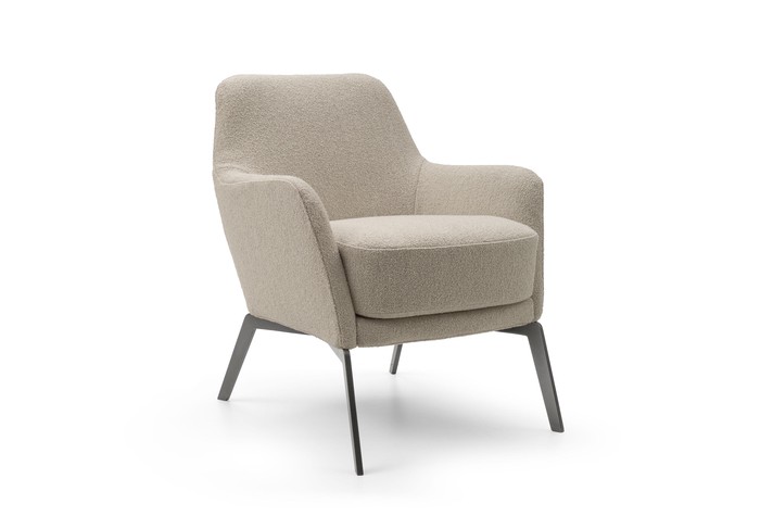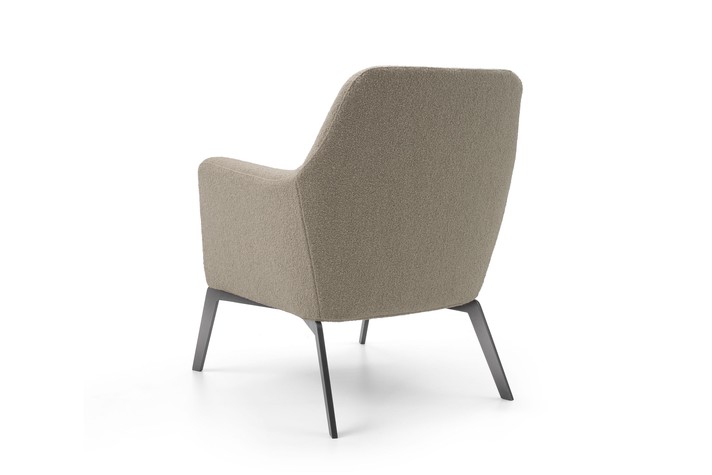 Современное узкое кресло с металлическими ножками и компактным сиденьем, которое можно использовать в качестве кресла для коктейлей, за обеденным столом или туалетным столиком в спальне. Компактное мебельное решение, выполненное из съемной ткани, кожи или бархата.
