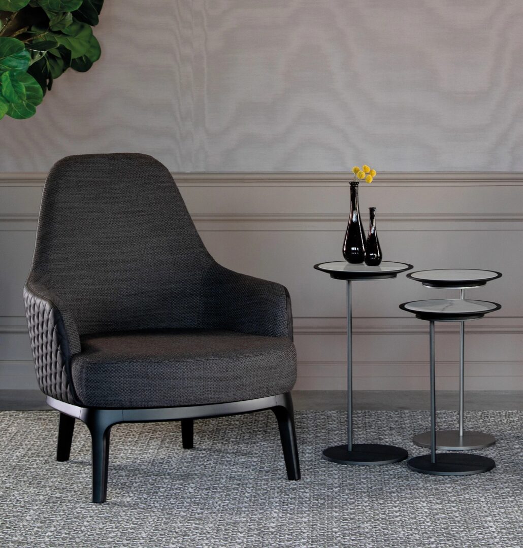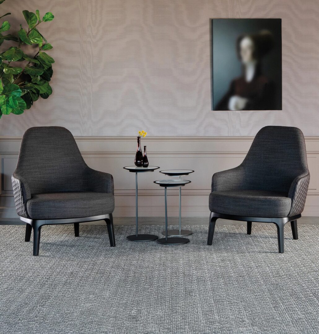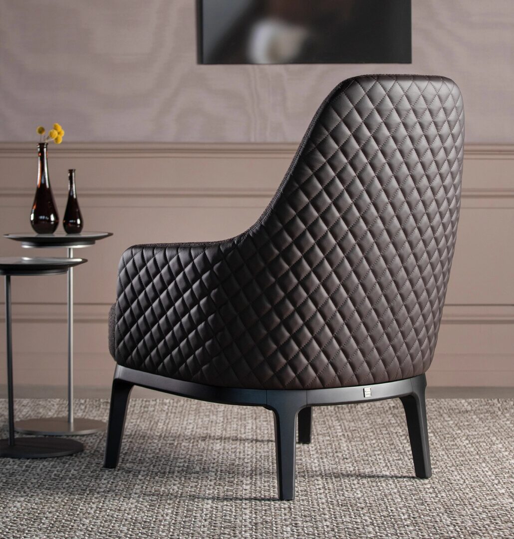 Коллекция Cleo дополняется креслом, которое также доступно в кожаной версии в сочетании с тканью, дополненной элитной версией элегантным ромбовидным стеганым одеялом на спинке.