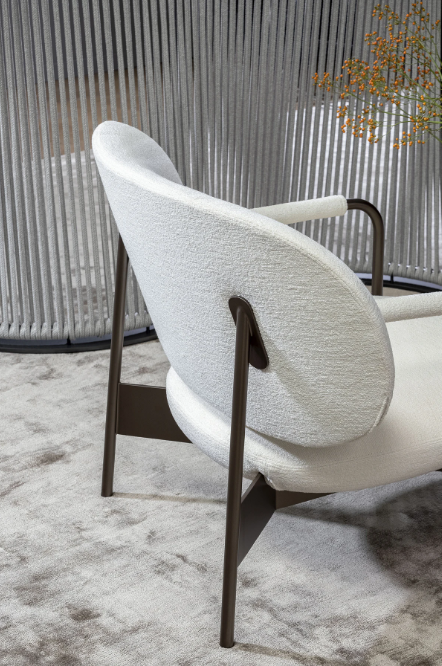 «Символическое обозначение разностороннего креста, созданного дизай-нером Аленом Жилем, является аналогом собаланс-рированного и международного размышление классициста XX века. Полностью обнаженный металлический каркас обыгрывает традиционную крестообразную основу, которая часто используется в стульях для поддержки сиденья, но в данном случае она подчеркнута до такой степени, что стала графическим заявлением и неотъемлемой частью идентичности стула. Мягкие элементы, сиденье и спинка, имеют необычные и преувеличенные пропорции, все они направлены на то, чтобы принять и разместить пользователя. Одна из главных особенностей этого кресла — конструкция подлокотника, состоящего из одной металлической трубки, которая изгибается в передней части кресла и продолжается, останавливаясь непосредственно перед спинкой.»