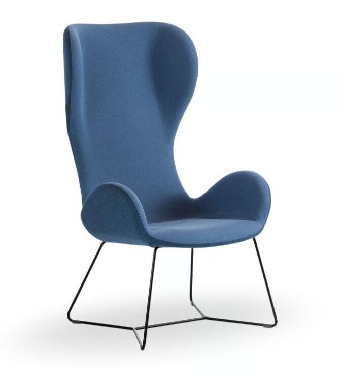 Кресло для отдыха Dalia с металлическим основанием и высокой спинкой. Корпус обит тканью, кожей или искусственной кожей.