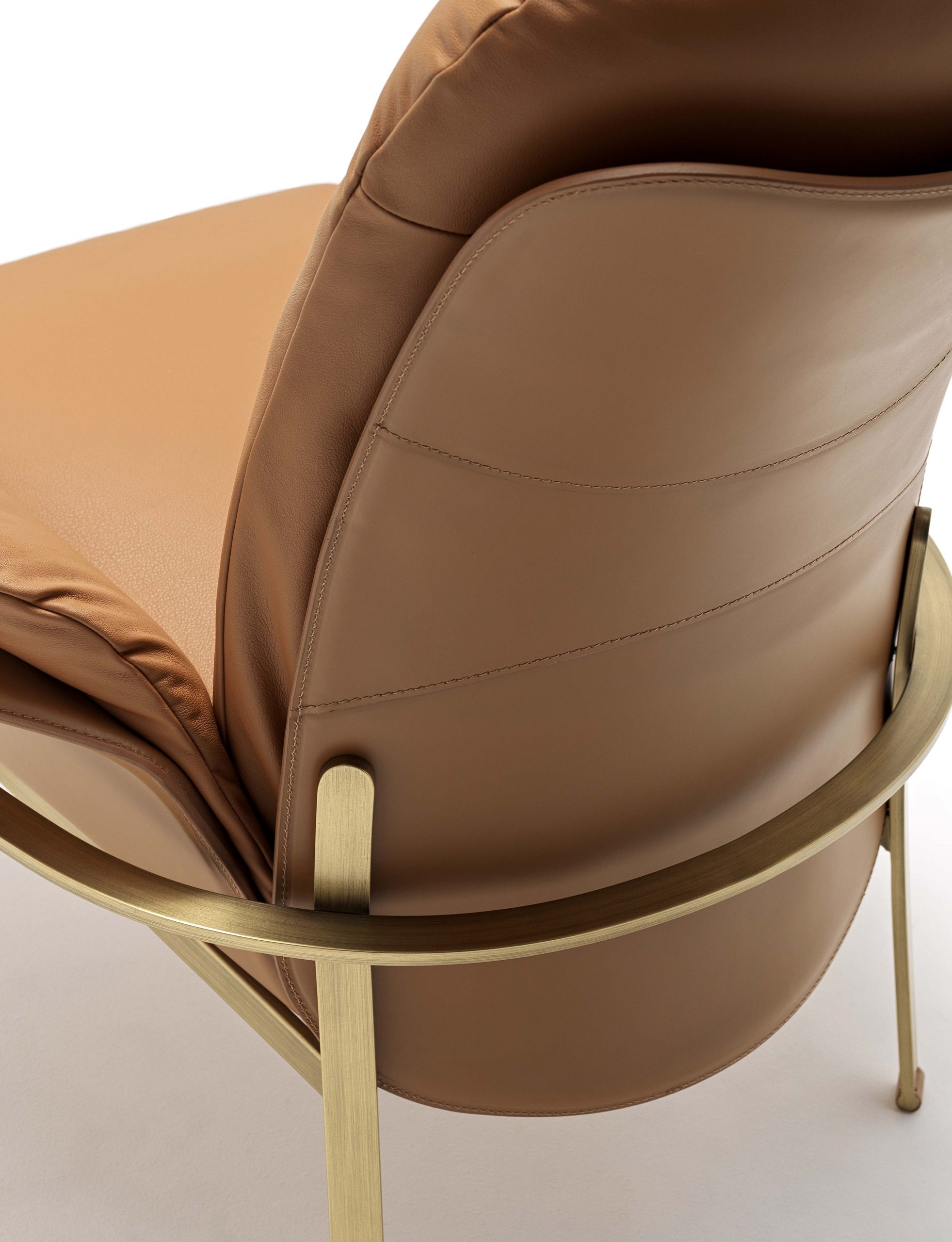 Фабрика Fasem использует только премиальные материалы, проверенные временем. Сиденье и подлокотники выполнены из буковой фанеры, известной своей прочностью и долговечностью. Вся внешняя поверхность, включая ножки, обиты натуральной кожей Fasem — мягкой, износостойкой и приятной на ощупь.