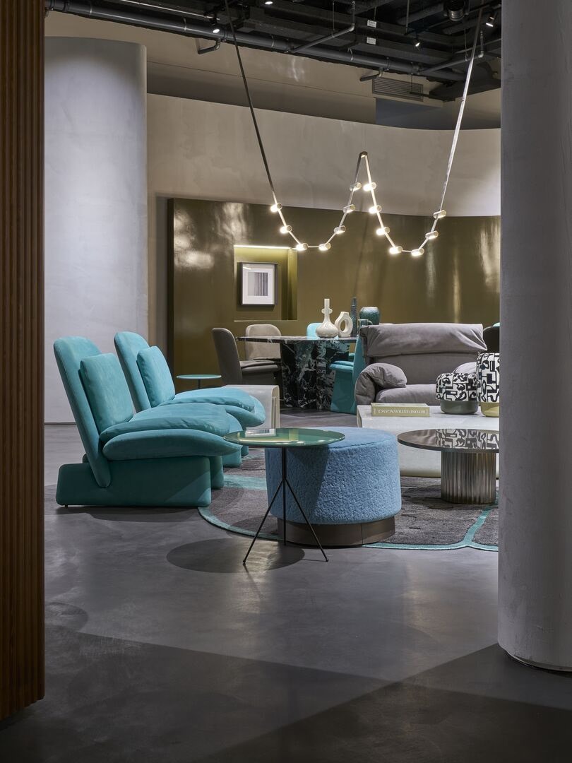 Кресло Elli от Кристофа Делькура, обладающее компактным дизайном, образованным переплетающимися округлыми геометрическими формами, представляет собой эклектичное сиденье, привлекающее внимание в любом помещении. Без подлокотников, как в креслах palaver, которые послужили источником вдохновения для Elli, они сочетают архитектурный дизайн с идеей комфорта и совместного использования, что способствует праздности и беседам. В результате получается сочетание мягких, изысканных форм, дополненных удобными мягкими подушками на широком сиденье и спинке.