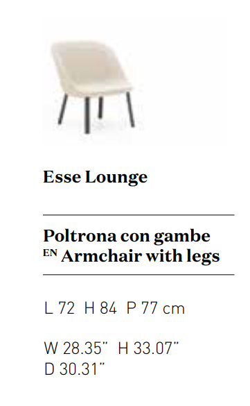 В дополнение к серии кресел семейства Esse, созданных по тому же вдохновляющему проекту, теперь у нас есть и Esse Lounge: кресло с еще более мягкой и обволакивающей спинкой. Формованное сиденье, как и основание, можно обить тканью, кожей или искусственной кожей, выбрав любой вариант из ассортимента Pianca. С другой стороны, модель на ножках может быть изготовлена из массива черного ореха или ясеня. Широкая, привлекательная форма сиденья придает креслу ощущение уюта и защищенности. По сравнению со своими “сестрами”, Esse Lounge отличается более широкими пропорциями, что говорит о непринужденной обстановке, в большей степени ориентированной на расслабляющий отдых.
