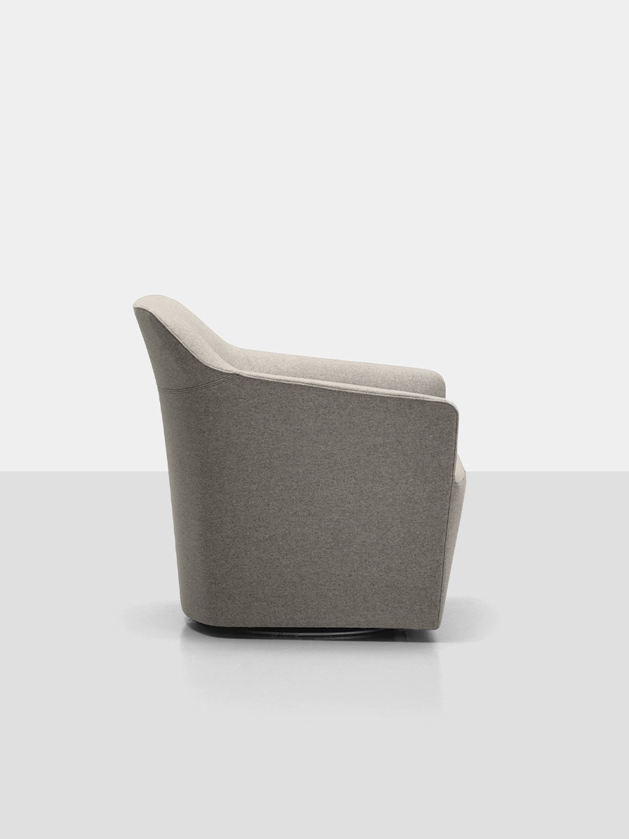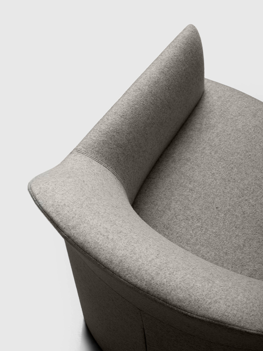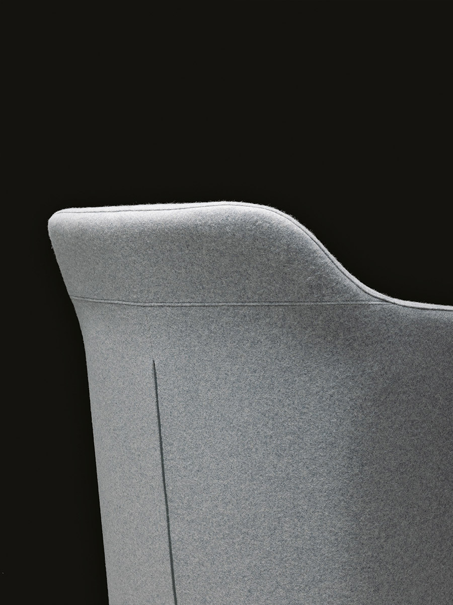 Студия Ramos Bassols разработала кресло с динамичными линиями, вдохновленными закрылками самолета. Форма кресла является результатом гипотетического сочетания узкого сиденья и большого объема. В нем удачно сочетаются толщина и вогнутые и выпуклые изгибы. В то время как конструкция из фанеры напоминает о морском мире, обивка выполнена по индивидуальному заказу. Кроме того, она визуально удобна, так как откидной клапан спроектирован таким образом, чтобы в нем можно было разместить обивку различной плотности. Доступный в комплекте с ножками или поворотным дисковым механизмом возврата, он имеет небольшие габариты, что делает его идеальным для любого дома или на контрактной основе.