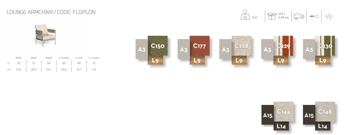Кресло для отдыха предназначено для тех, кто стремится к полному расслаблению в пространстве, предназначенном для созерцания и хорошего самочувствия. Его мягкие, благородные формы подчеркиваются сочетанием лакированного алюминия и теплоты тикового дерева, что создает баланс и гармонию. Отборные ткани, также доступные в исполнении с декоративными полосками, украшают сиденье, придавая изысканный вид внешнему пространству и превращая каждое мгновение в настоящий комфорт.