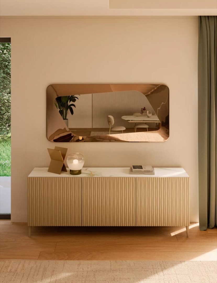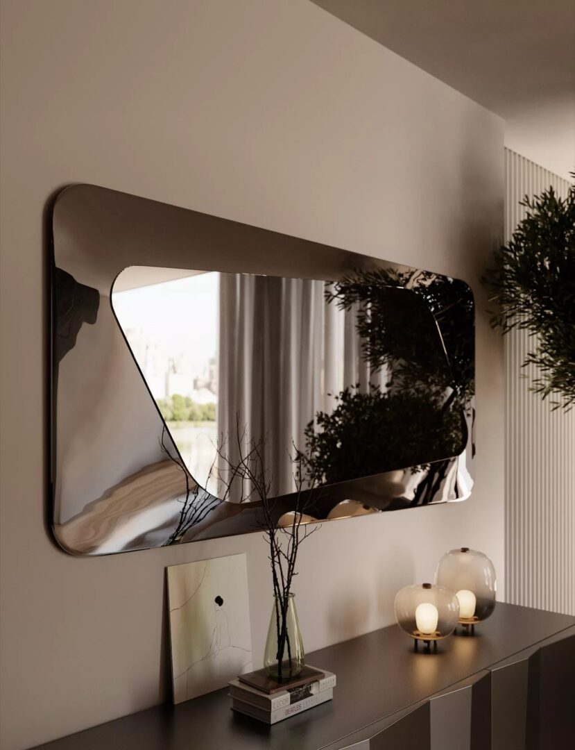 Зеркало Focus, выполненное из литого стекла, воплощает красоту контролируемой несовершенности. Оно визуально расширяет пространство, рассказывает историю материала и украшает стену с легкостью и глубиной. Закруглённый выступающий край образует рамку, придавая зеркалу скульптурный, почти резной вид. Focus можно установить как вертикально, так и горизонтально, легко адаптируя его к разным помещениям: от элегантного холла до современного гостиного пространства и утончённой спальни. Его органичная форма и визуальный объём делают его молчаливым героем, который способен насыщенно украшать интерьер.