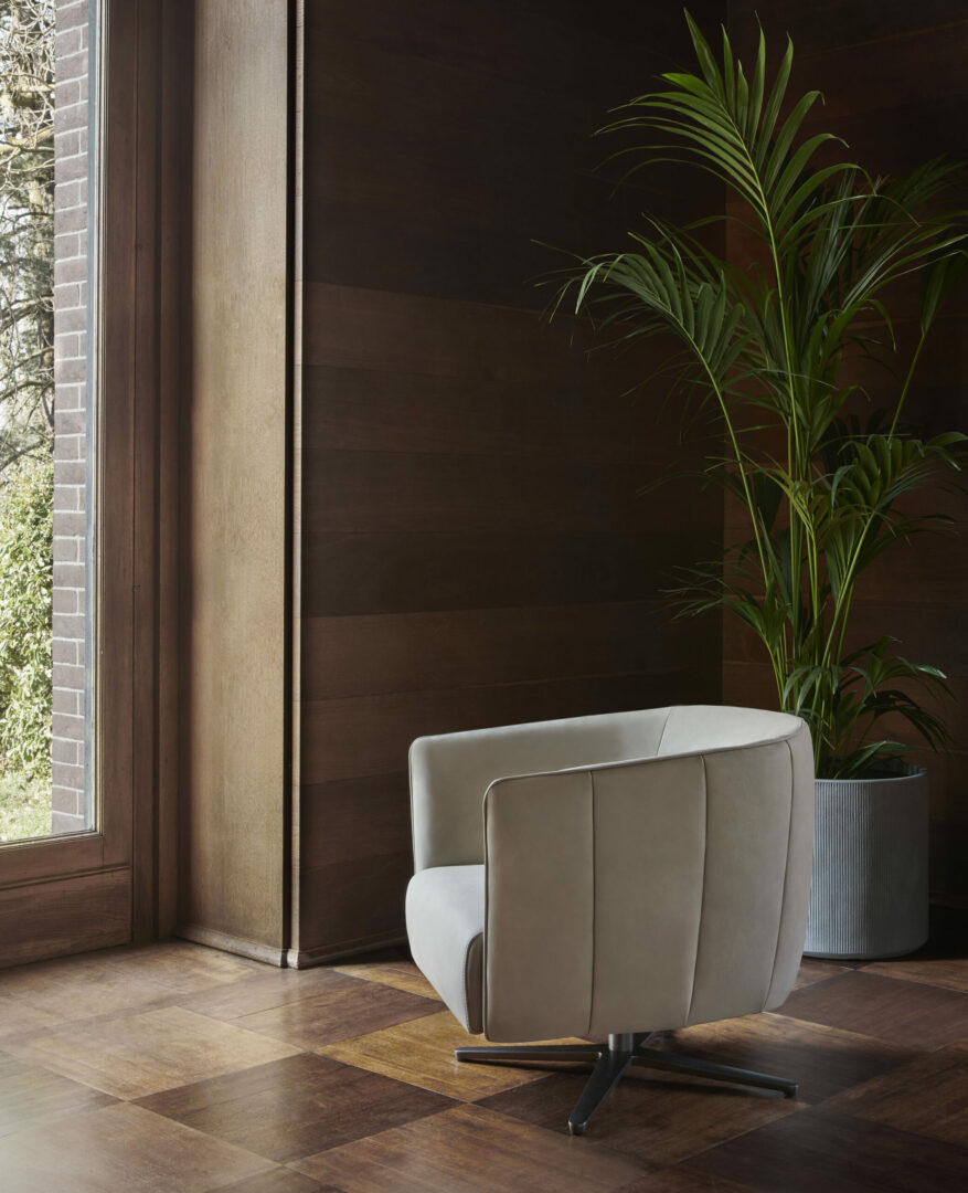 Элегантное и утонченное кресло Holly, разработанное студией Dainelli для Conte, изготовлено из дерева и полиуретана высокой плотности и обито кожей или тканью. Внешняя конструкция дополнена элегантной стеганой тканью, которое поддерживается поворотным металлическим основанием.
