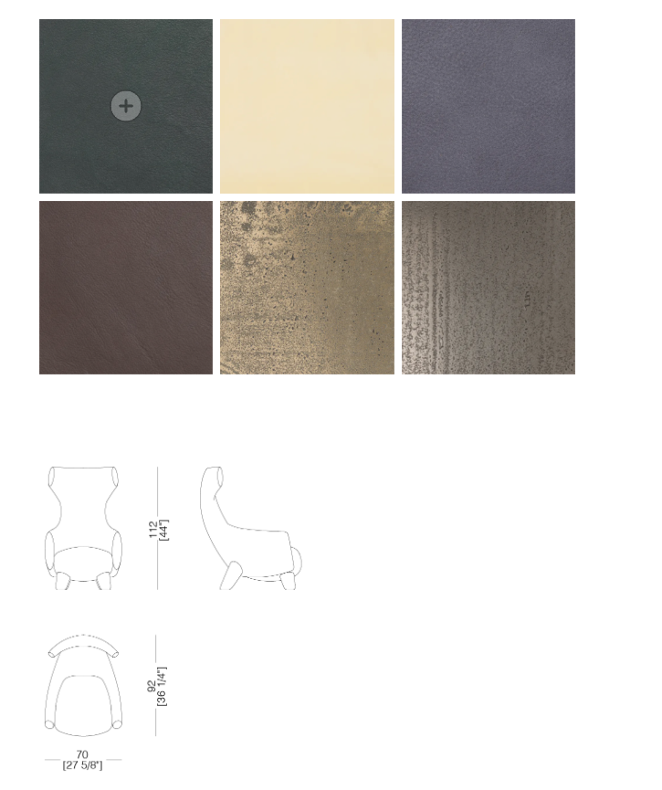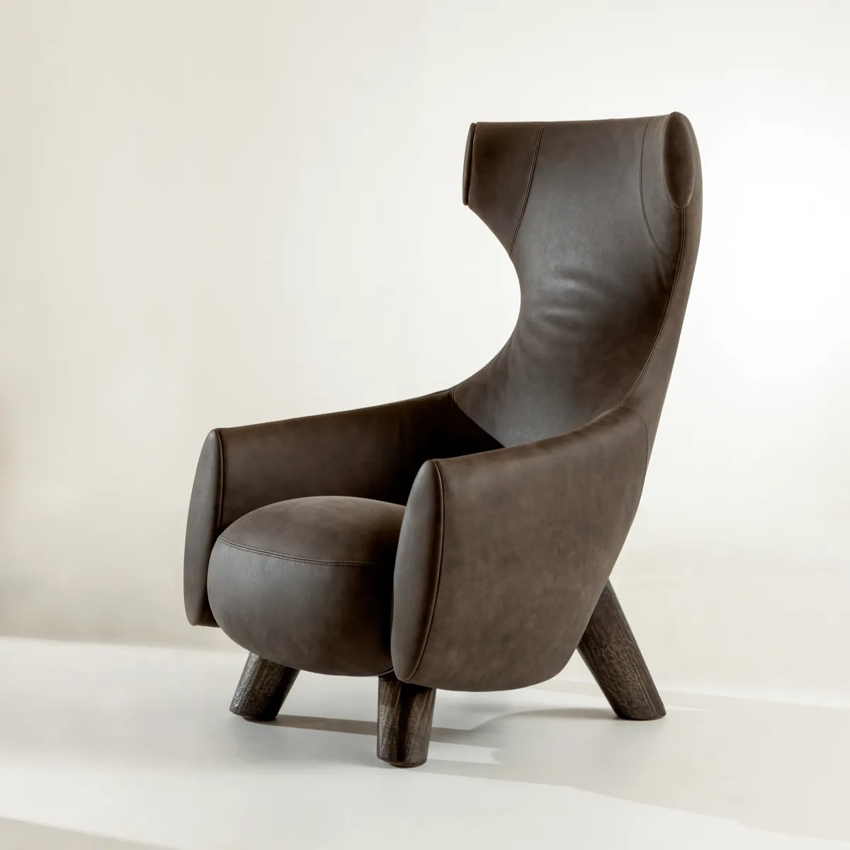 Обито кожей Cloud 6048 и опирается на ножки из Жидкого Металла Raptor в отделке Тёмное Олово. Ippolita Bergère выделяется обволакивающим силуэтом и компактным дизайном. Боковые «крылья» подголовника и мягкие округлые подлокотники образуют плавную и защитную линию, придающую креслу выразительное и уверенное присутствие.