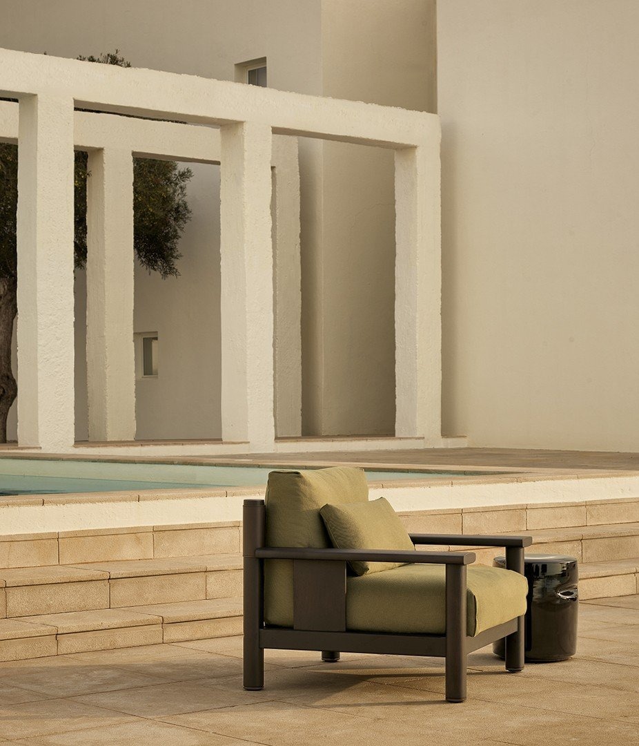 Для модели, источником вдохновения при создании которой послужило искусство мореплавания, были выбраны большие объемы и четкие очертания. В кресле Ketch лаконичный прочный каркас из массива древесины ироко сочетается с гибкой спинкой, которая напоминает парус, натянутый между двумя мачтами корабля. Кресло смотрится оригинально даже если использовать его отдельно от других предметов коллекции, в которую также входят диван и столик.