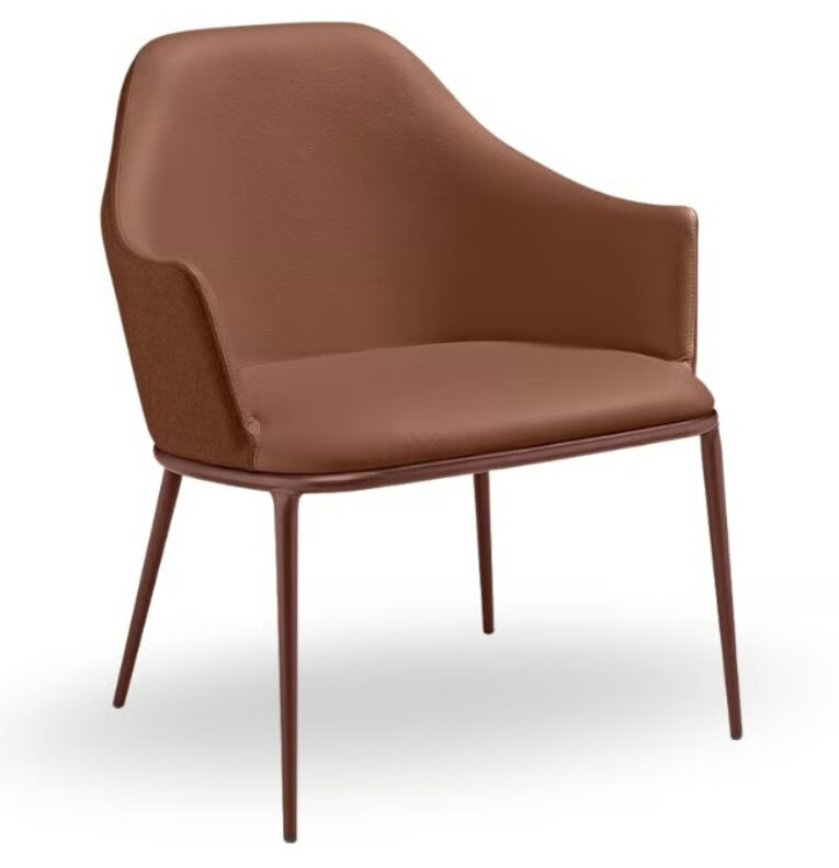 Кресло для отдыха Lea с металлическим основанием. Сиденье обтянуто тканью, кожей или искусственной кожей.