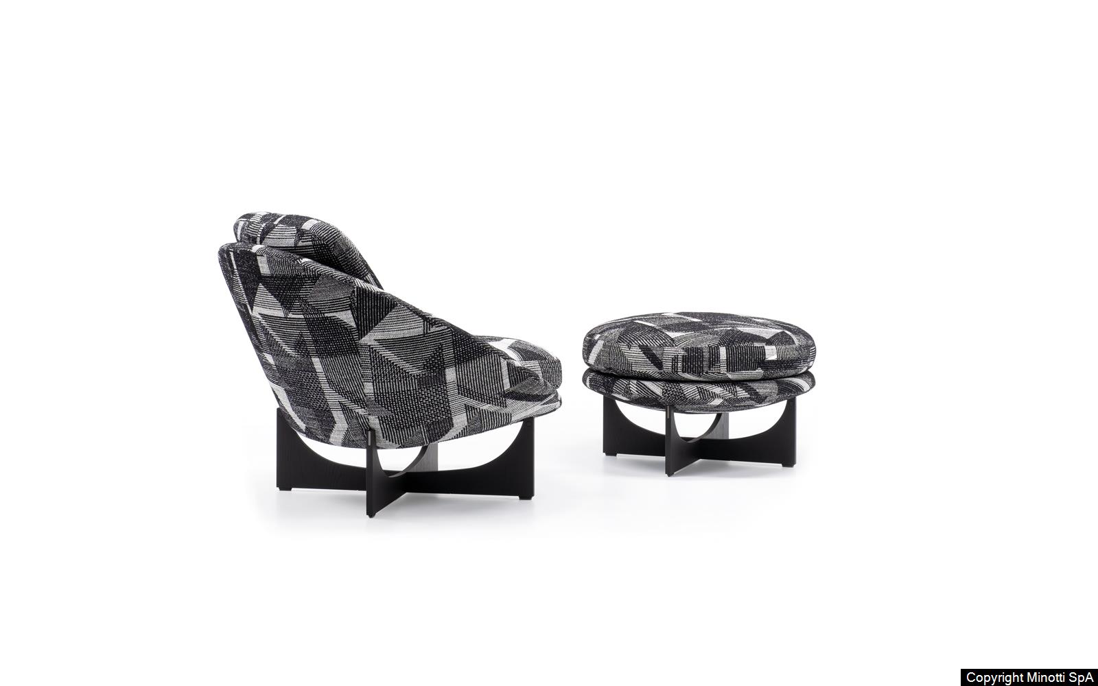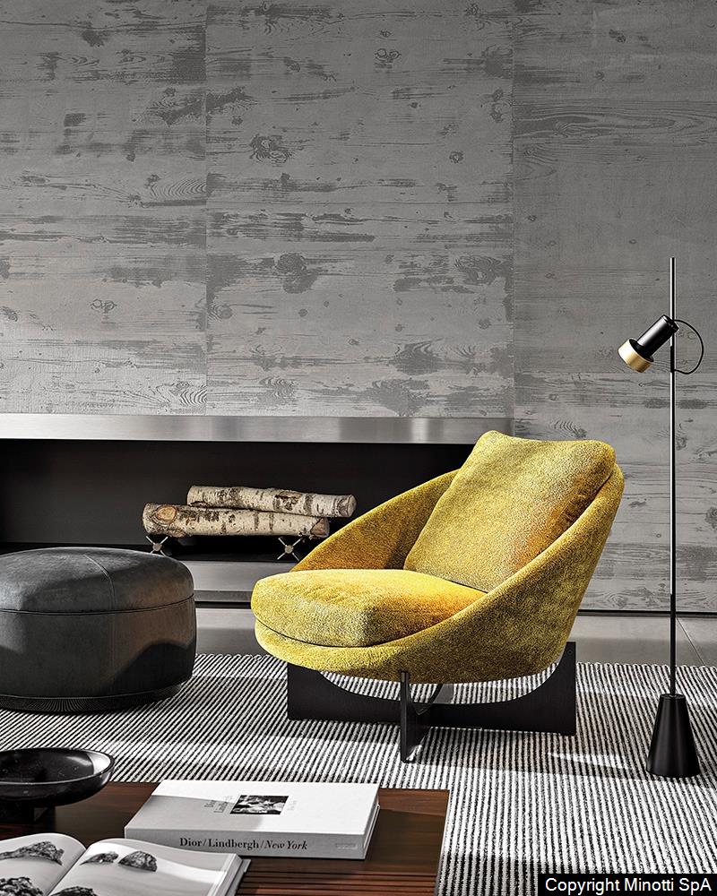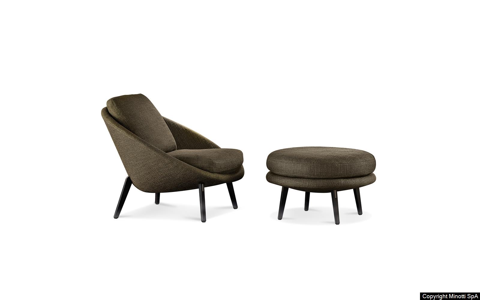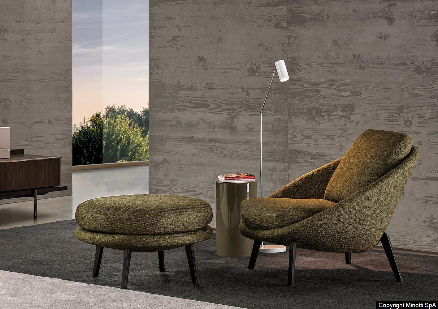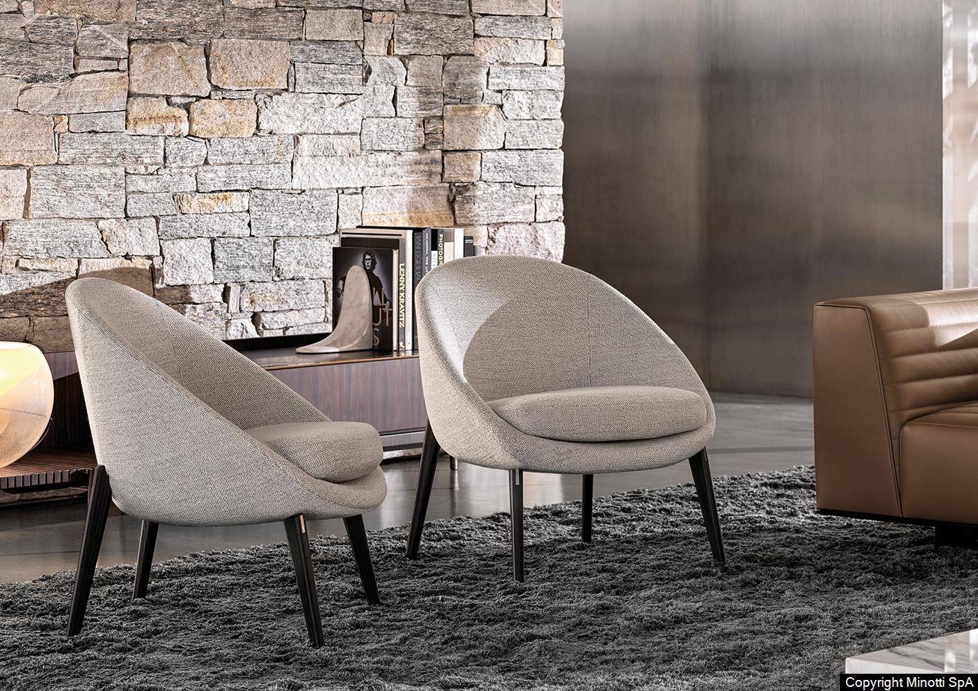 Кресло выполнено из качественных текстурированных тканей, характерных для итальянского производства. Доступно также в варианте двухместного дивана — идеальное решение для дома или гостиничных интерьеров. Минималистичный дизайн с акцентом на комфорт подчеркивает статусность бренда MINOTTI.