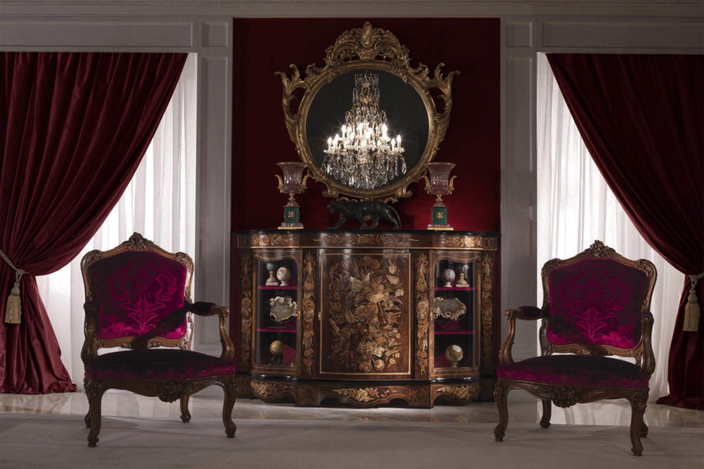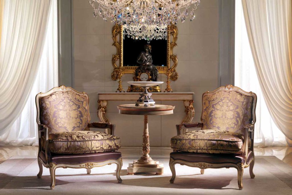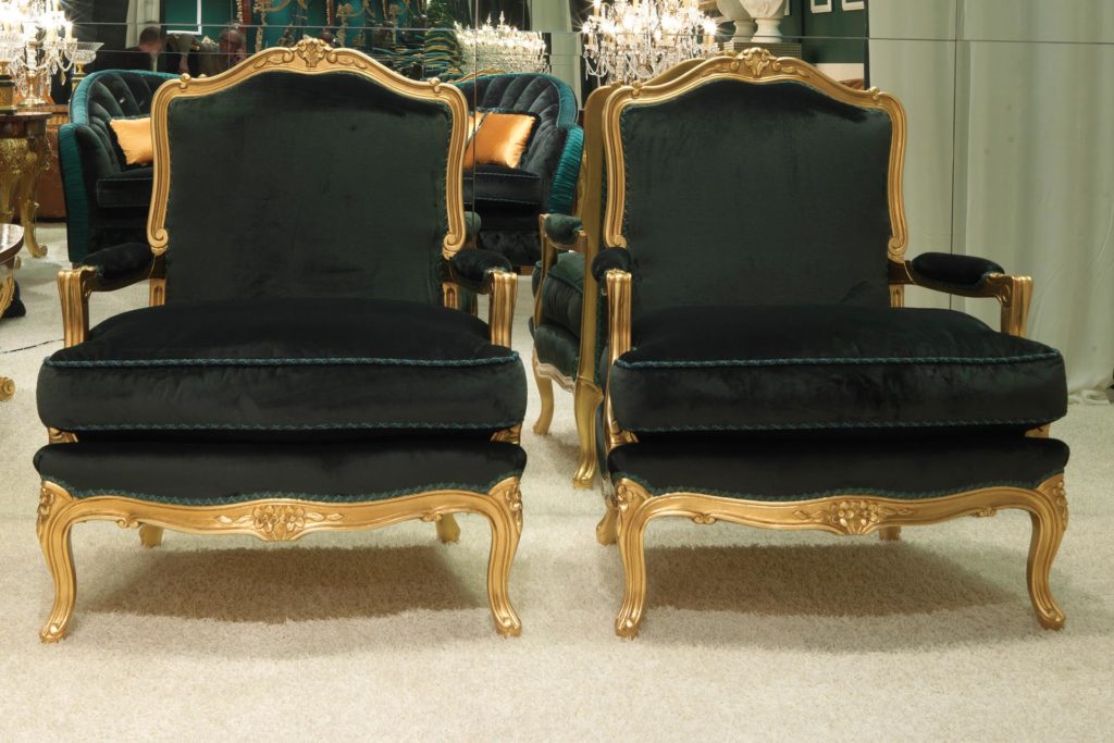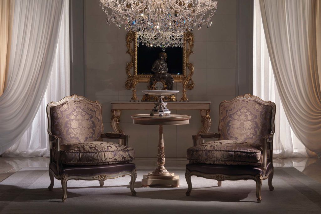 Гостиная, состоящая из дивана и кресла в классическом стиле с каркасом, украшенным резьбой и скульптурами, с подлокотниками с мягкими подушечками. Людовик XV доступен в версиях: кресло, двухместная кушетка и трехместная кушетка.