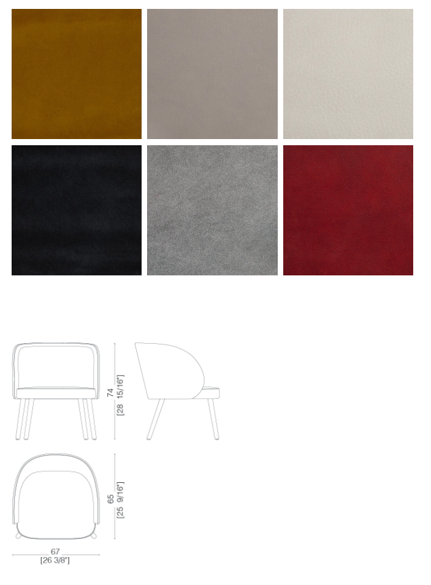 Обитое кресло с ножками из бука или натурального ясеня, окрашенными или лакированными, и обтянутое кожей, бархатом или тканью.