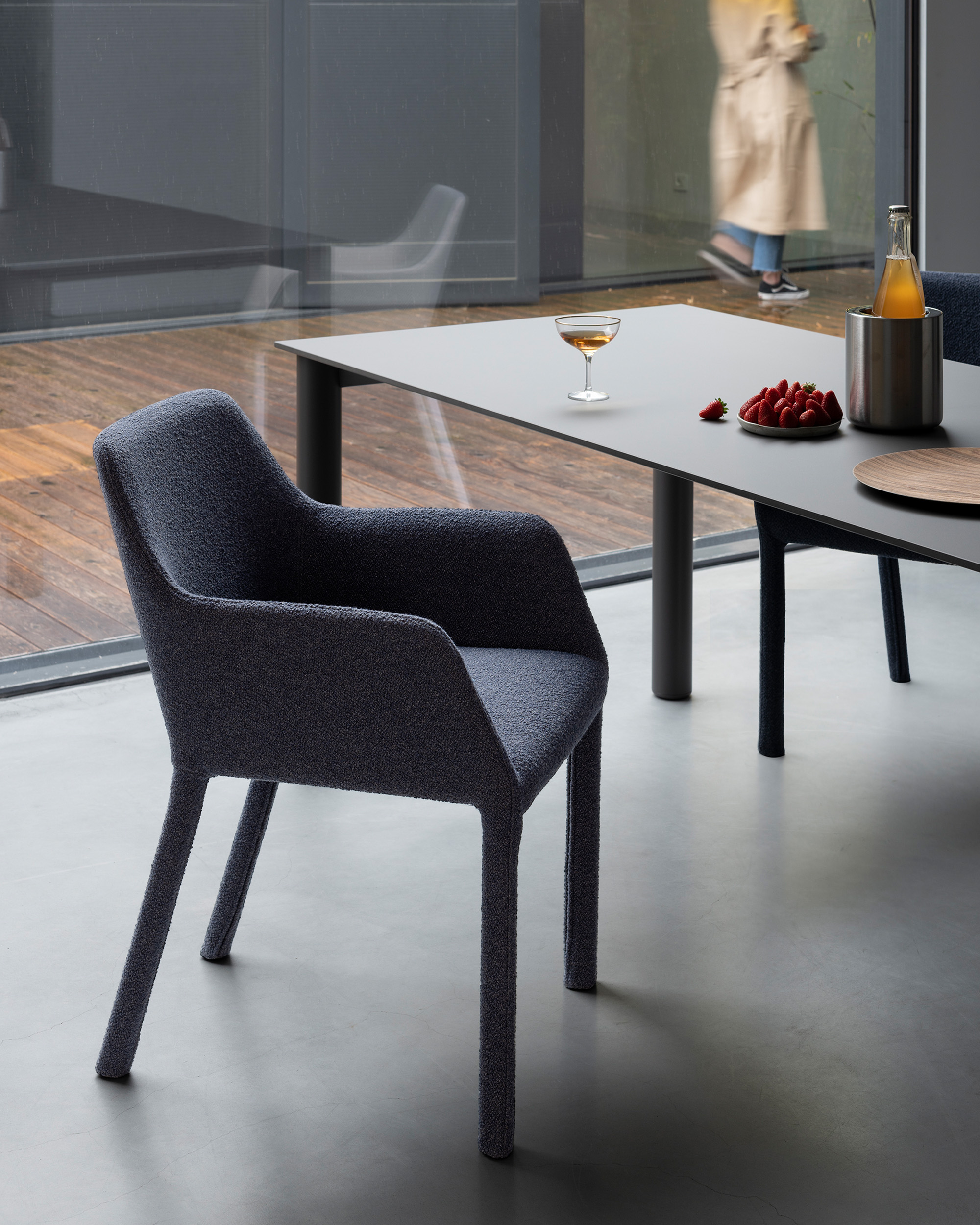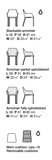 Кристоф Пилле переделал кресло Mem, смягчив его оригинальные геометрические линии мягкой обивкой. От оригинального кресла Mem Soft сохранились полипропиленовые ножки, которые остаются видимыми под широким сиденьем, в то время как несъемная обивка — из всех тканей и кожи, доступных в коллекции, – превращает его в современное и минималистичное ковшеобразное кресло. Высокий комфорт сиденья делает его идеальным для использования дома и в офисных помещениях.