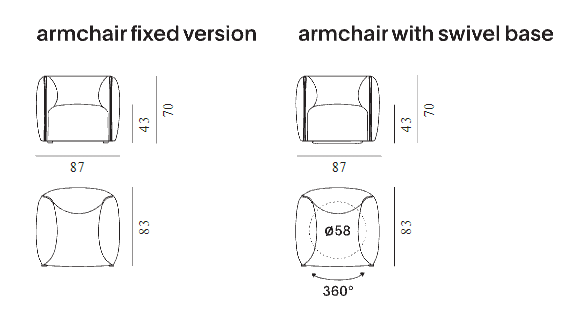 Кресло Mia отличается привлекательной формой, вдохновленной простым движением складывания подушки для создания интимного и расслабляющего пространства. Смелый профиль в сочетании с комбинированной или контрастной обивкой придает креслу особый и универсальный характер, идеально подходящий как для жилых помещений, так и для офисных помещений. Модель Mia, доступная как в фиксированном исполнении, так и в поворотном на 360° исполнении с возвратным механизмом, сочетает в себе комфорт и функциональность, сохраняя при этом мягкую, объемную эстетику. Для дополнительного комфорта ее можно сочетать с соответствующим пуфом, предлагая комплексное решение для полного расслабления.