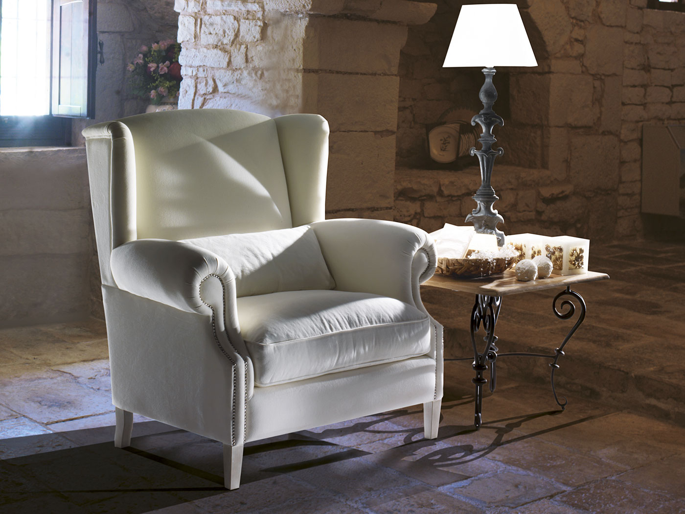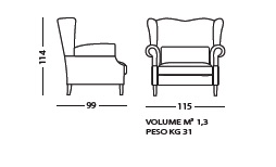 Структура: дерево и его производные, высокопрочные перекрестные эластичные ремни. Опора сиденья может поставляться со спиральными пружинами со стоимостью дополнительный. Набивка: пенополиуретан с различными размерами и качеством, полиэфирные волокна. По запросу обивка сиденья из гусиного пуха. Особенности: открытые ноги, стандартные подставки для ног.