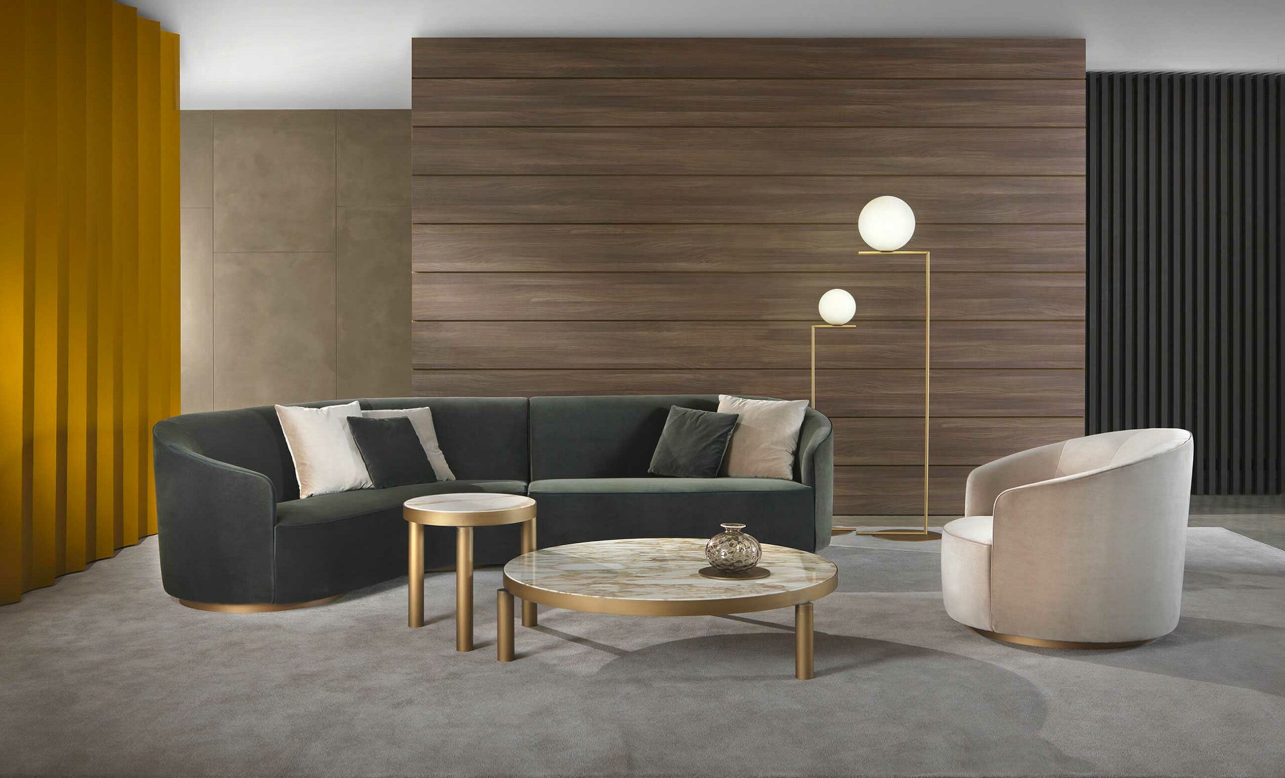 Произведено в Италии фабрикой Giulio Marelli, известной своим вниманием к деталям и качеству материалов. Доступно в различных конфигурациях и обивках, что позволяет адаптировать его под индивидуальные предпочтения. Идеально подходит для гостиных, кабинетов и зон отдыха.