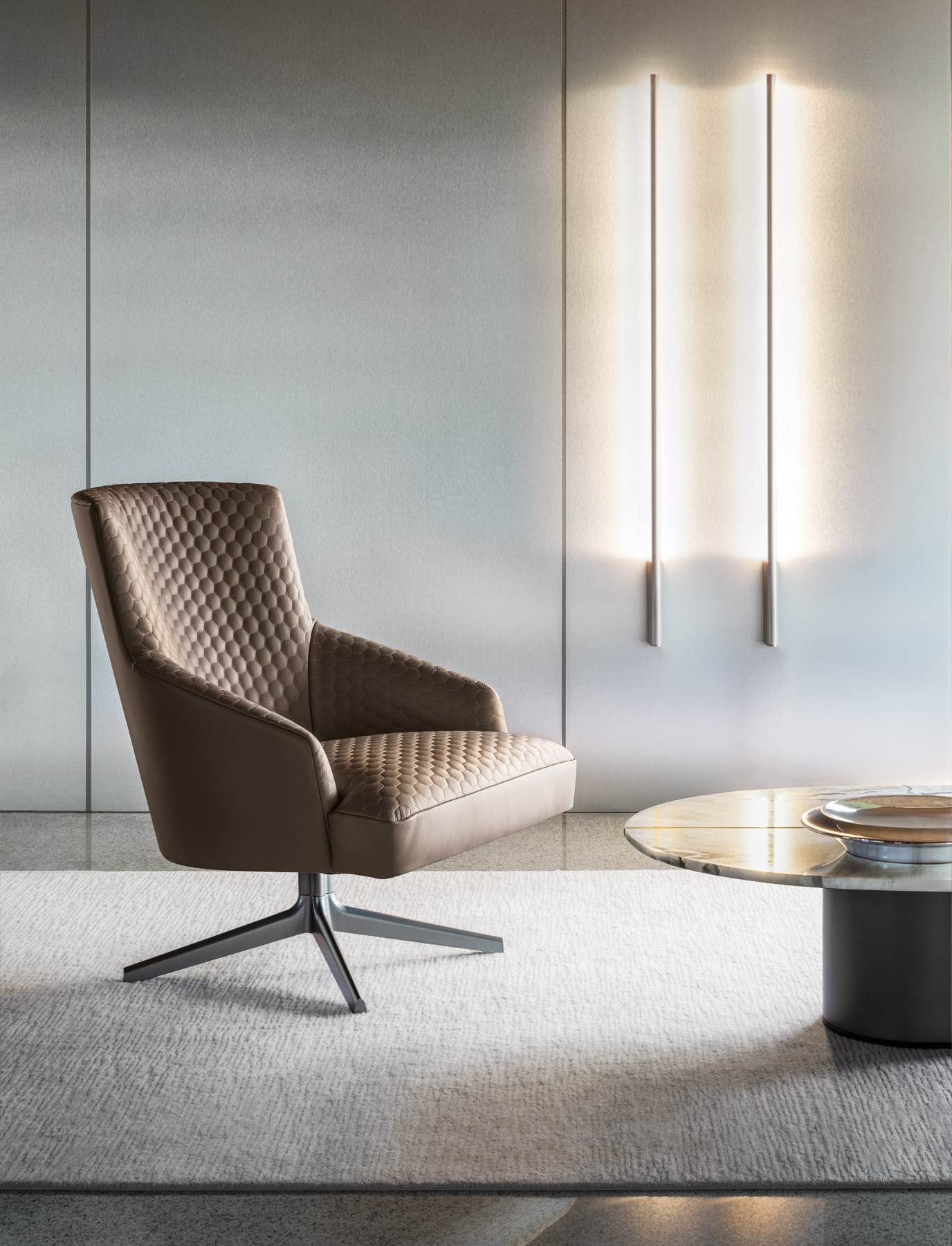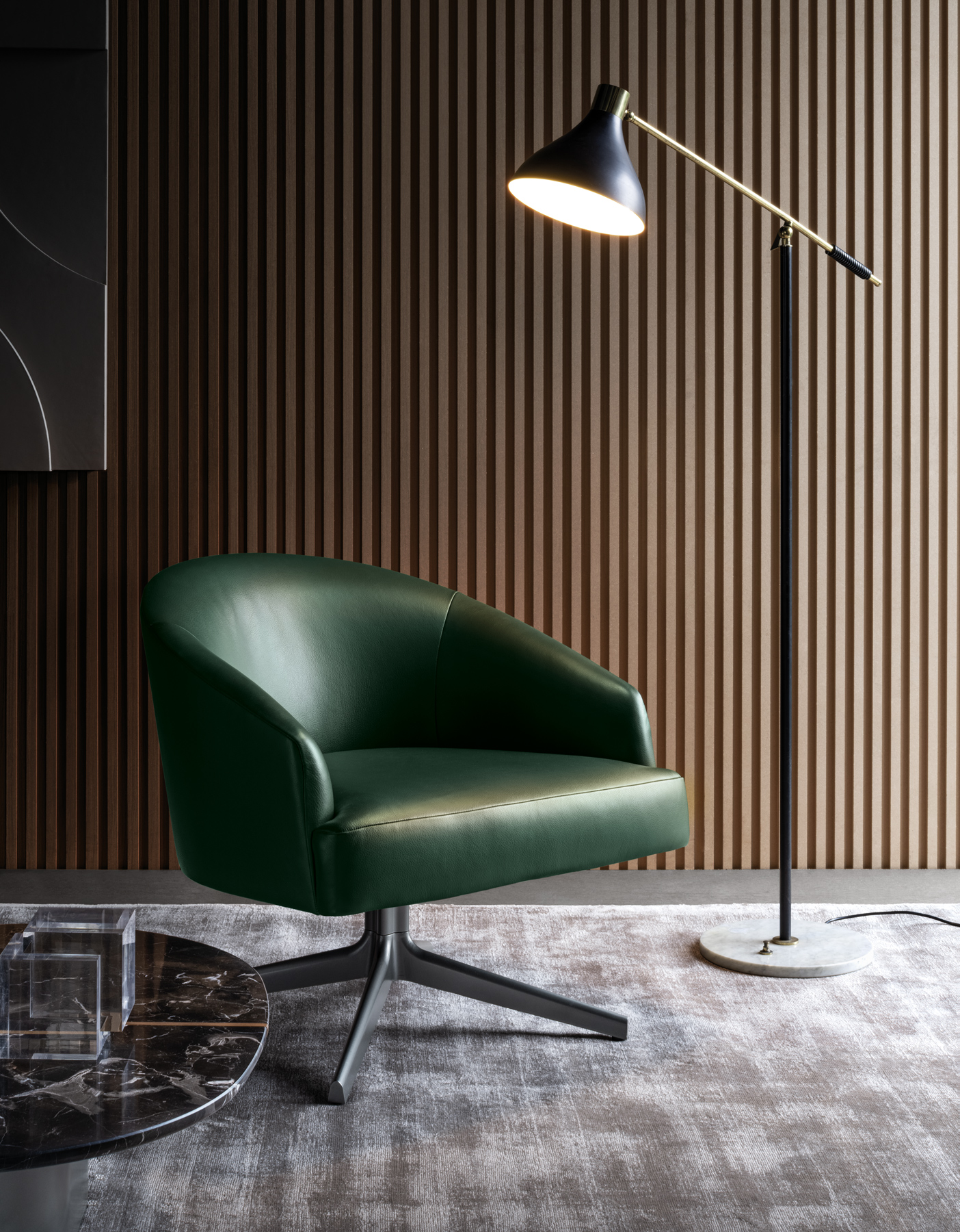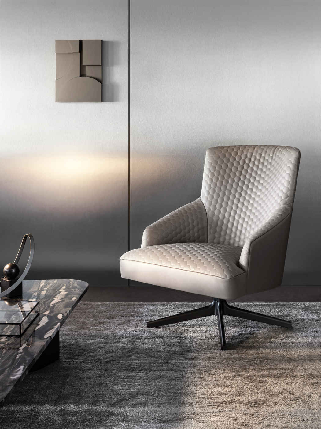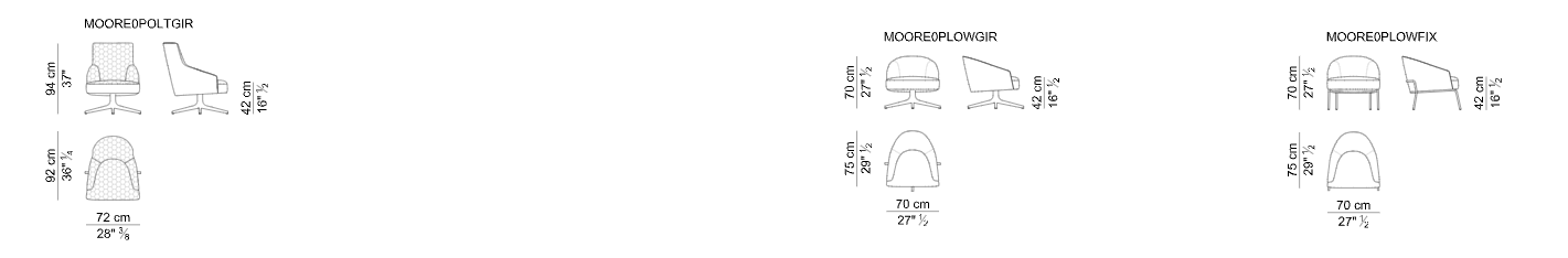 Геометрические фигуры в их формальном совершенстве стимулируют творческое воображение и отсылают к языку ар-деко. Элементы декомпозируются и перекомпоновываются в бесконечных повторениях, создавая строгие декоративные мотивы или скульптурные сочетания. Следуя этому творческому подходу, Умберто Аснаго разработал кресло Moore Relax для дополнения коллекции Moore, уже представленной дизайнером. Большой корпус, выполненный в виде цилиндрической части, располагает к расслаблению; центральное основание позволяет совершать вращательные движения; кожаная обивка придает проекту вневременной образ.