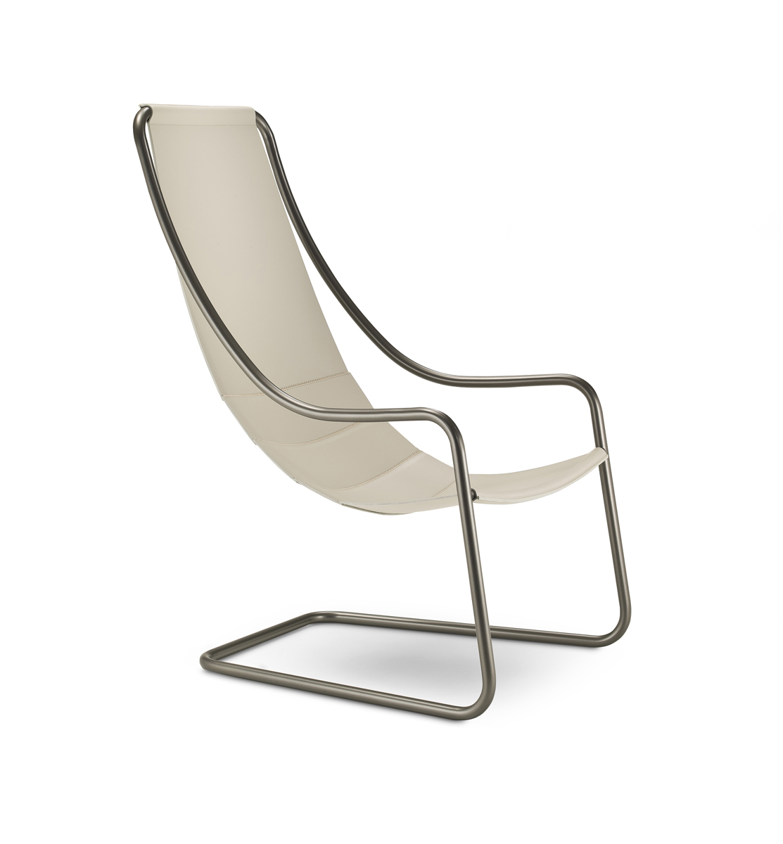 Столичный дух воплощен в изящном и непринужденном кресле bergère с высокой спинкой, простой графической вывеске. Оно имеет раму из хромированной или окрашенной трубчатой стали на ваш выбор. Выбор в индустриальном стиле, который в сочетании с обивкой сидений натуральной кожей делает Nancy незаменимым продуктом.